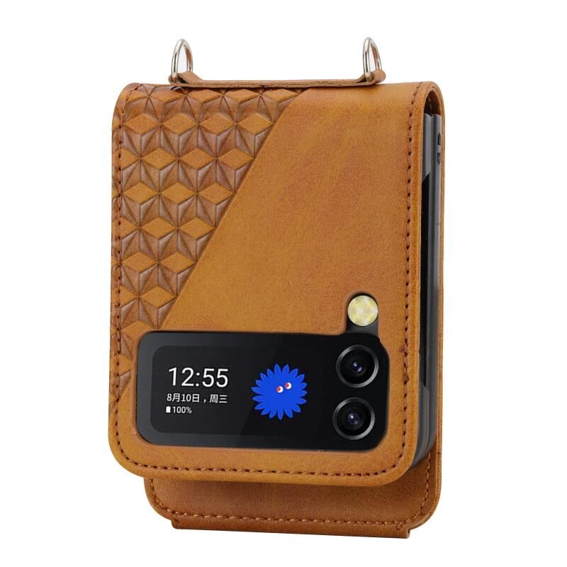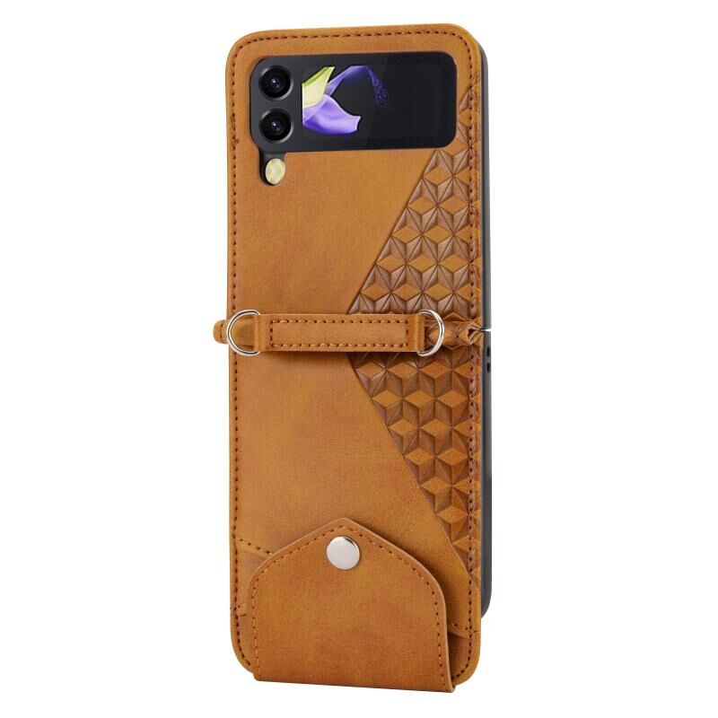 Για Samsung Galaxy Z Flip4 Cubic Grid Calf Texture δέρμα τηλέφωνο υπόθεση (κίτρινο)