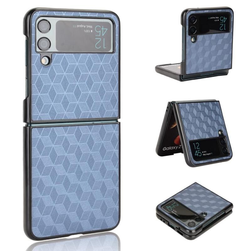 For Samsung Galaxy Z Flip4 Cubic Grid Texture Leather Back Cover Phone Case(Blue)