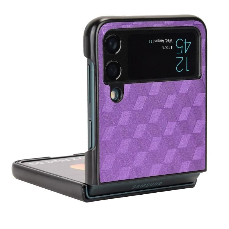 For Samsung Galaxy Z Flip4 Cubic Grid Texture Leather Back Cover Phone Case(Purple)
