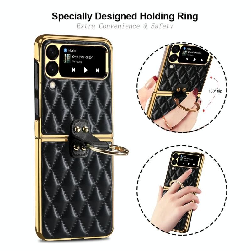 For Samsung Galaxy Z Flip4 Diamond Lattice Plain Leather Ring Phone Case(Black)