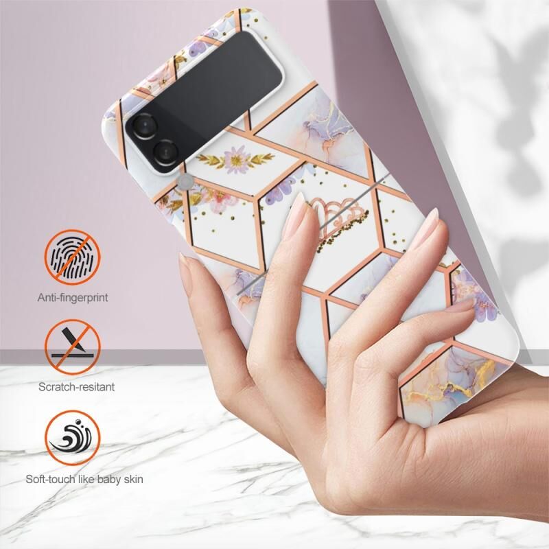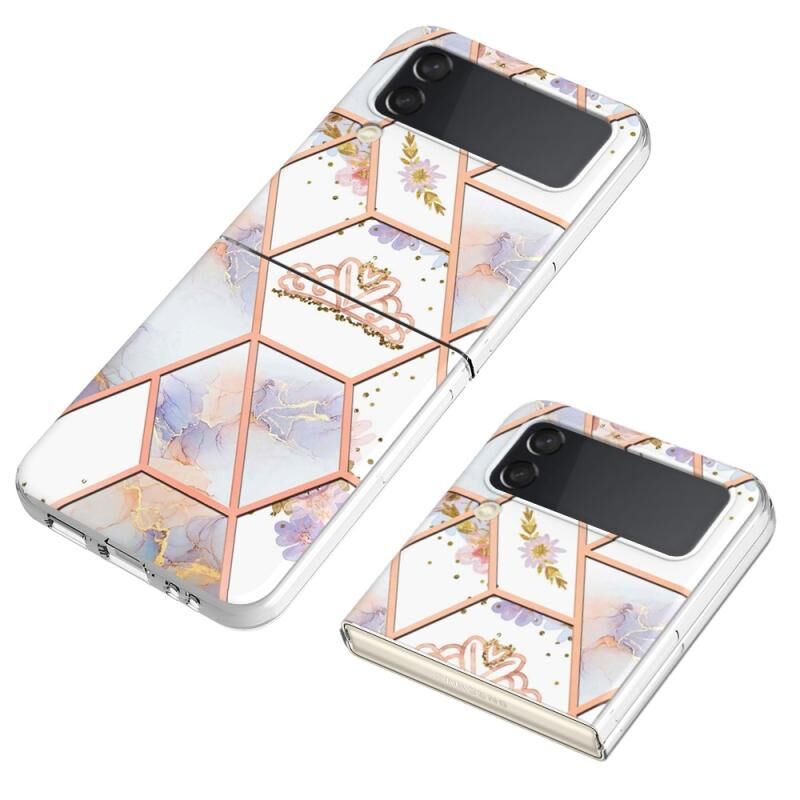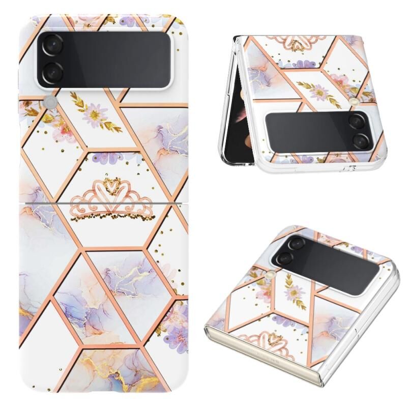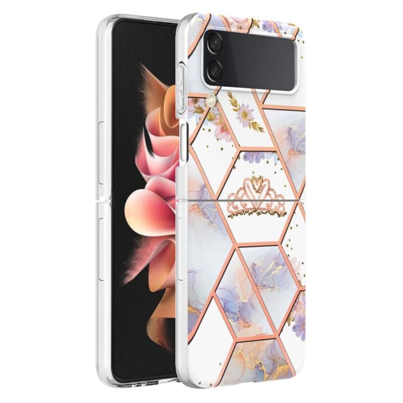 Θήκη τηλεφώνου TPU με σχέδιο μαρμάρου και λουλουδιών με ηλεκτρολυτική επικάλυψη για Samsung Galaxy Z Flip4 (Crown)