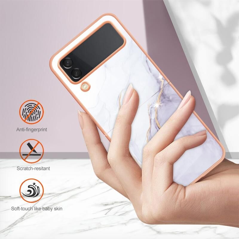 Θήκη τηλεφώνου Samsung Galaxy Z Flip4 με ηλεκτρολυτική μαρμάρινη υφή IMD TPU (Μωβ 001)
