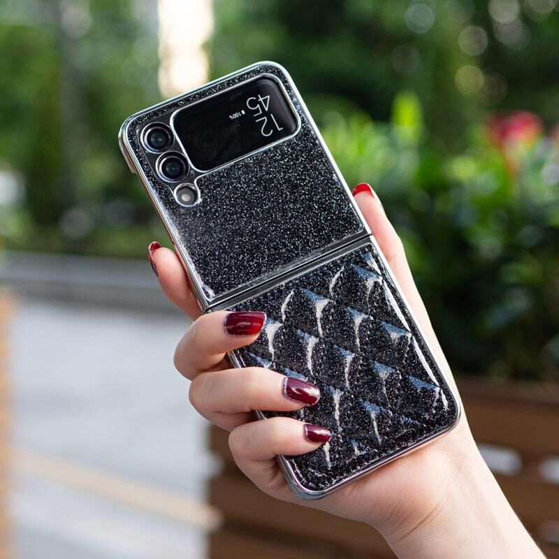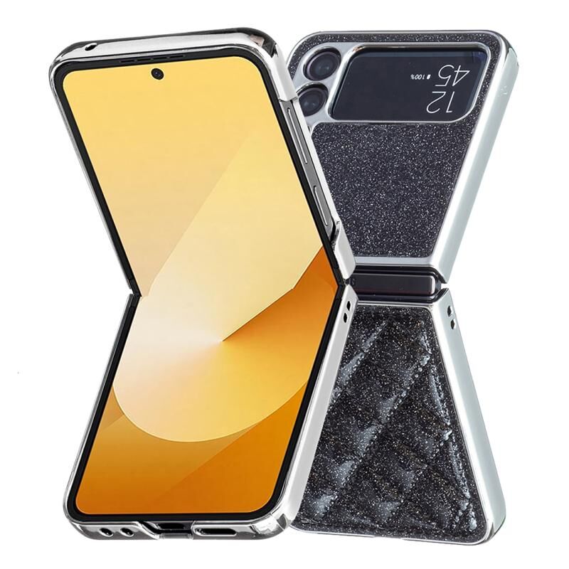 Για το Samsung Galaxy Z Flip4 Ηλεκτρολυτική επιμετάλλωση Rhombic Glitter PU υπόθεση τηλεφώνου (Μαύρο)