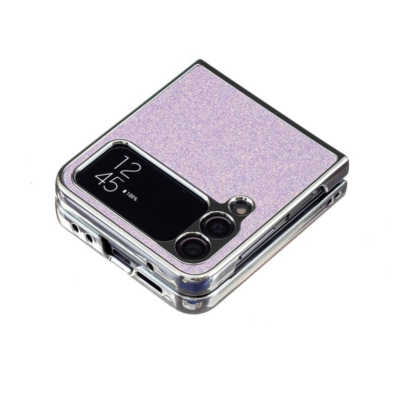 Για Samsung Galaxy Z Flip4 Electroplating τετράγωνο Glitter PU υπόθεση τηλεφώνου (μωβ)