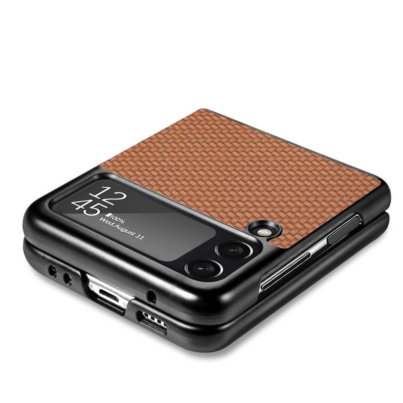 Για το Samsung Galaxy Z Flip4 Fiber Texture Fold Αδιάβροχη θήκη τηλεφώνου (καφέ)