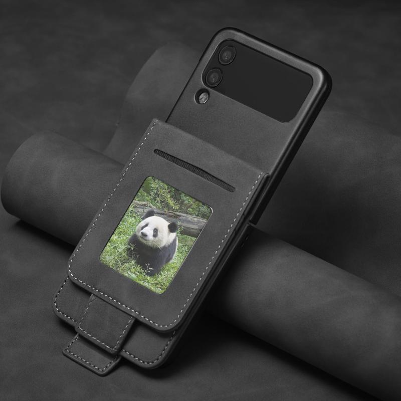 Θήκη τηλεφώνου δερμάτινη με αγκράφα διπλής όψης Forwenw για Samsung Galaxy Z Flip4 (Μαύρο) (Forwenw)