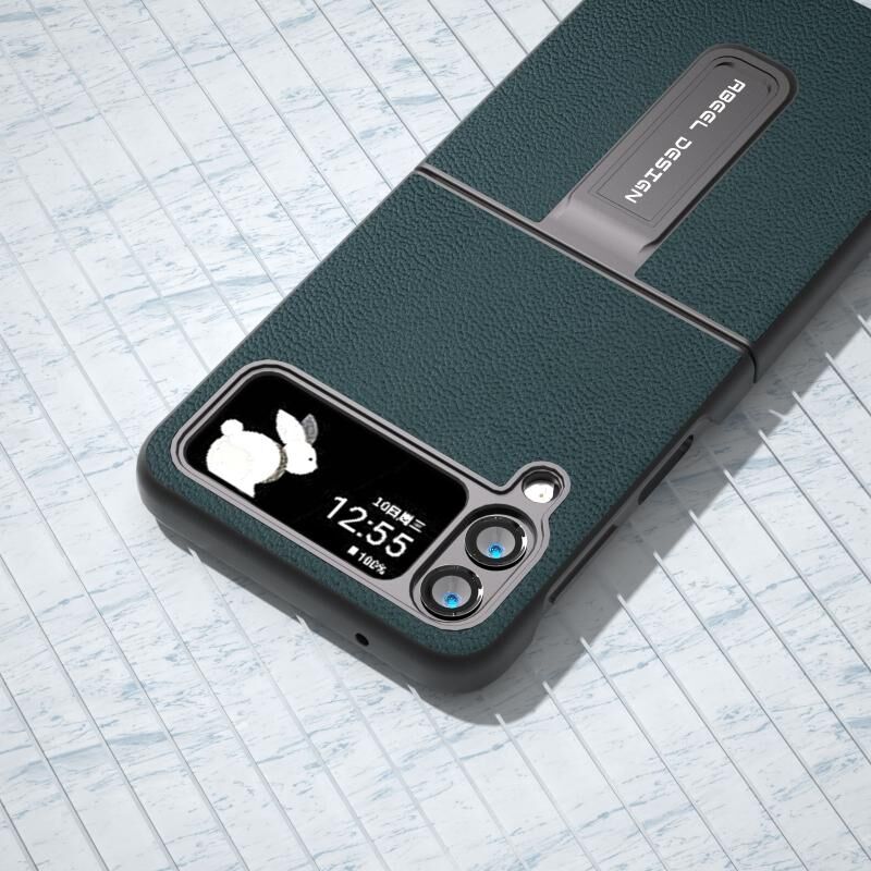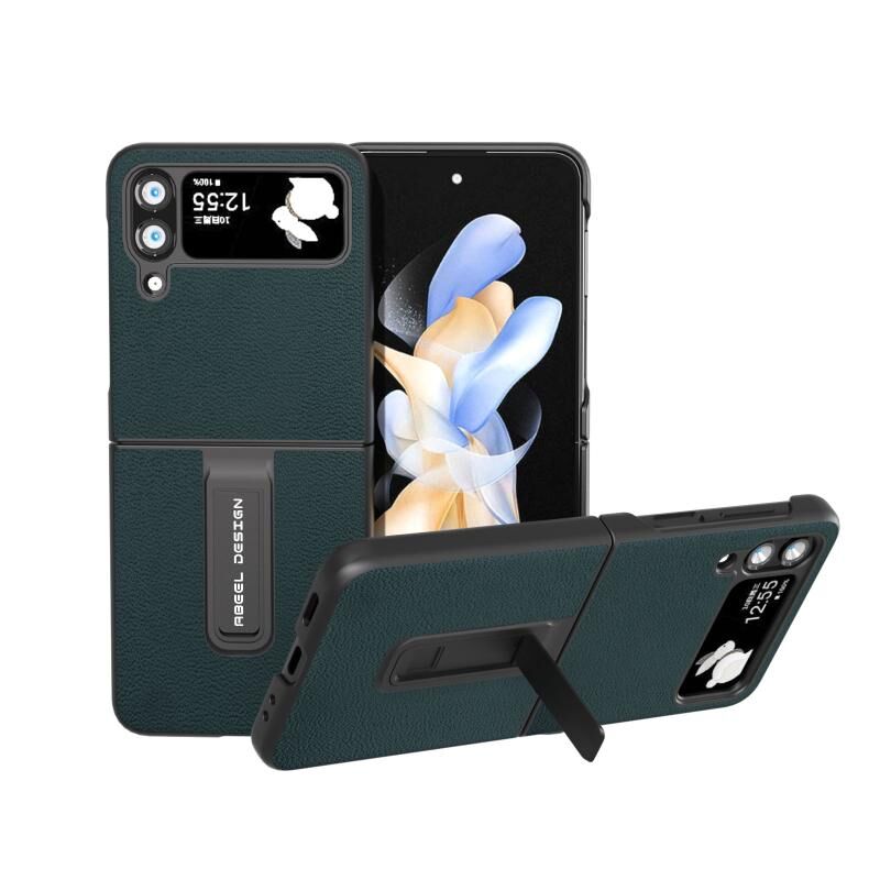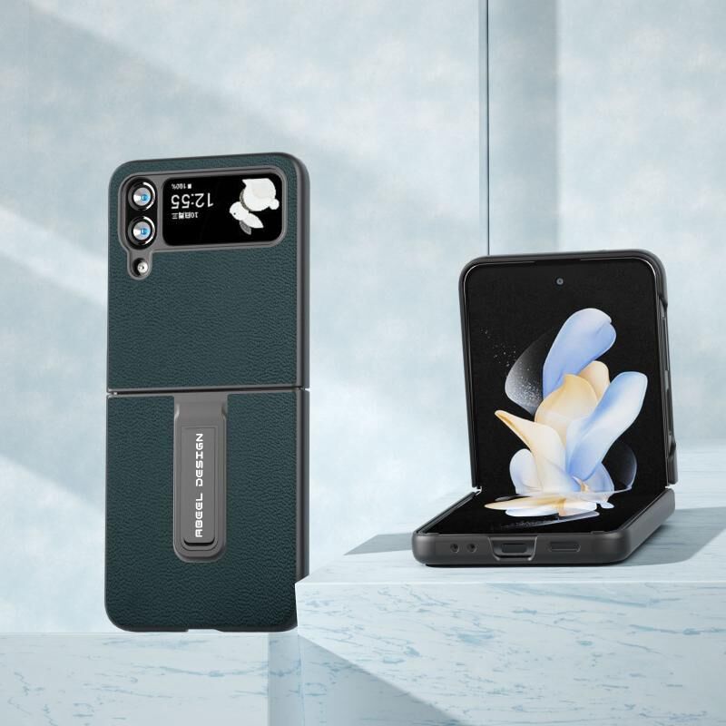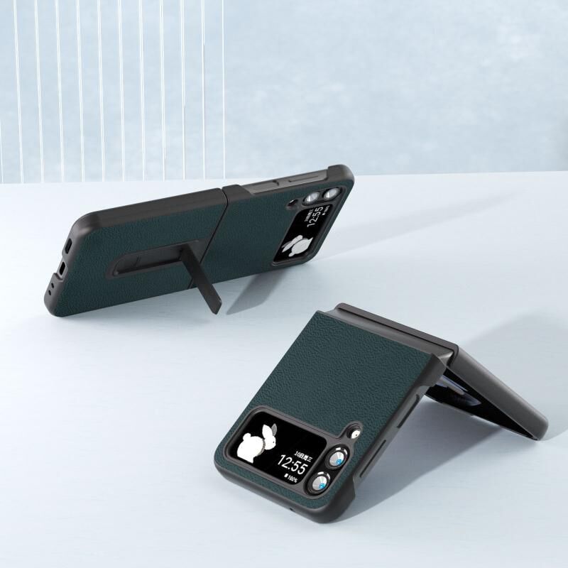 Θήκη τηλεφώνου Samsung Galaxy Z Flip4 από γνήσιο δέρμα σειράς Luolai με βάση στήριξης (Σκούρο Μπλε)