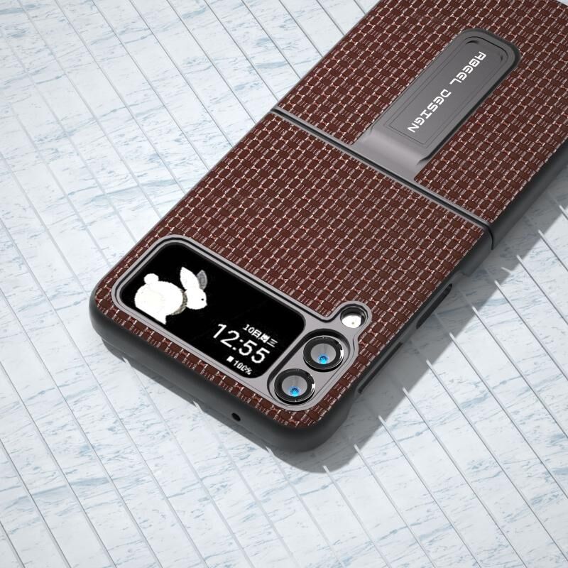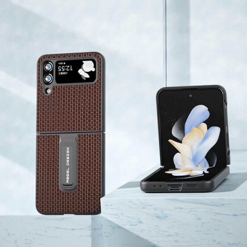 Θήκη τηλεφώνου Samsung Galaxy Z Flip4 από γνήσιο δέρμα, πολυτελούς σειράς, με βάση στήριξης (Καφές)