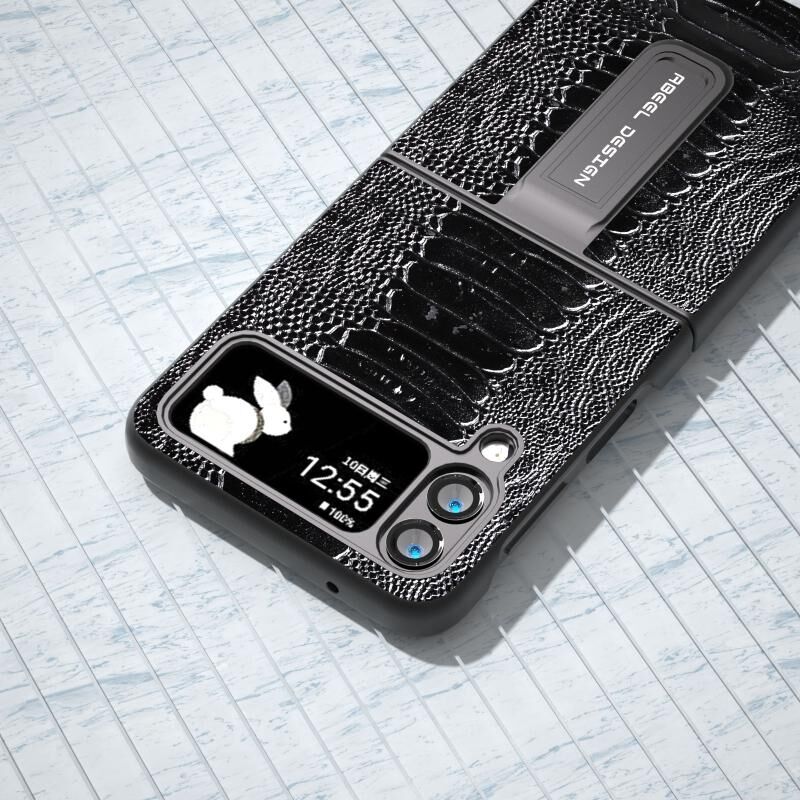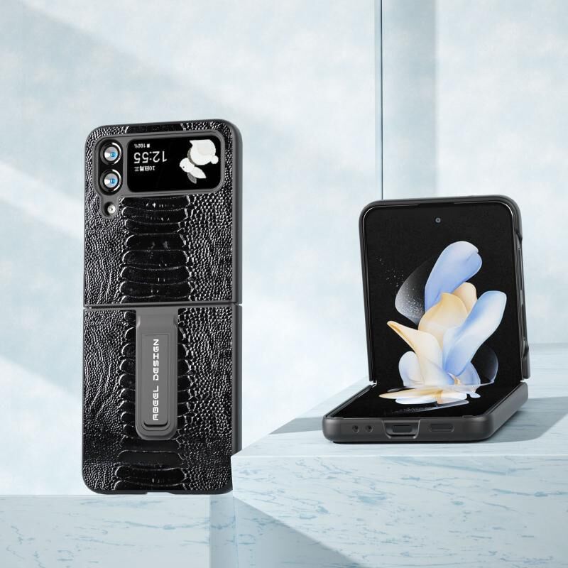 Θήκη τηλεφώνου Samsung Galaxy Z Flip4 από γνήσιο δέρμα σειρά Weilai με βάση στήριξης (Πράσινο)