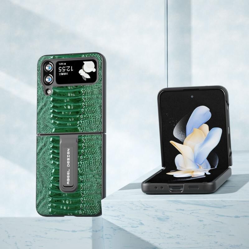 Θήκη τηλεφώνου Samsung Galaxy Z Flip4 από γνήσιο δέρμα σειρά Weilai με βάση στήριξης (Πράσινο)