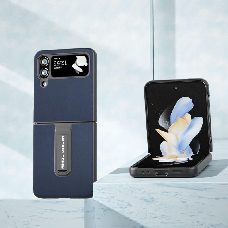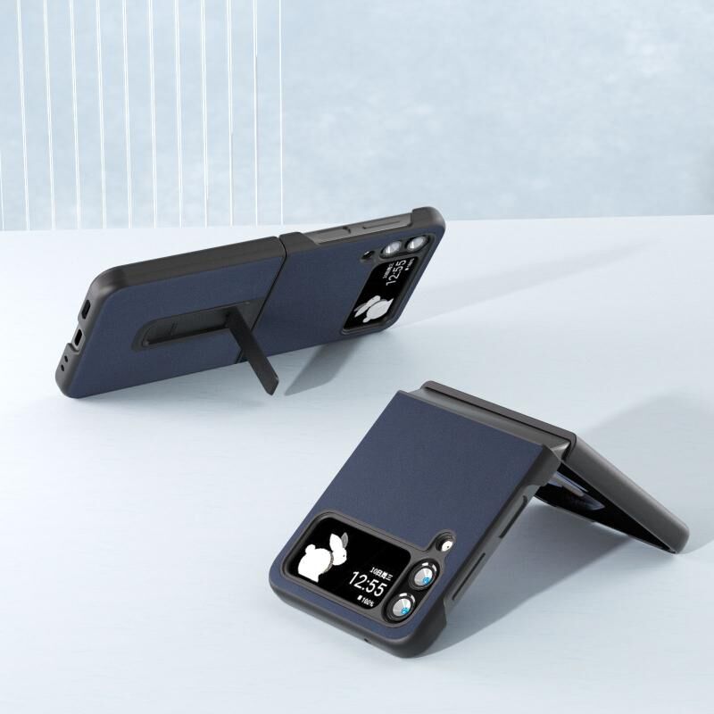 Θήκη τηλεφώνου Samsung Galaxy Z Flip4 από γνήσιο δέρμα σειρά Xiaoya με βάση στήριξης (Σκούρο Πράσινο)
