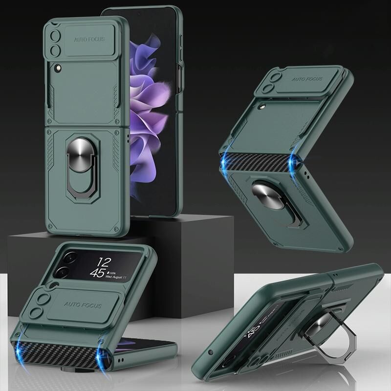 Για Samsung Galaxy Z Flip4 GKK άνθρακα συγκόλλησης μοτίβο Shockproof θωράκιση θήκη τηλεφώνου PC θήκη με δαχτυλίδι κάτοχος (πράσινο) (GKK)