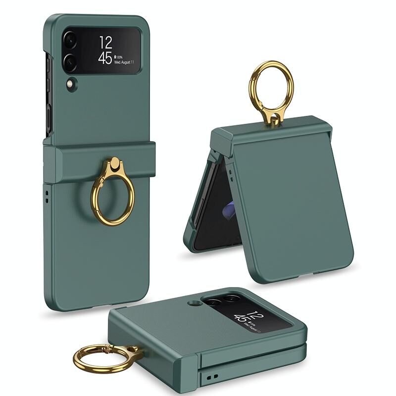 Για το Samsung Galaxy Z Flip4 GKK Υπερυψωμένη θήκη τηλεφώνου με μεντεσέ πλήρους κάλυψης με θήκη δαχτυλιδιού (σκούρο πράσινο) (GKK)