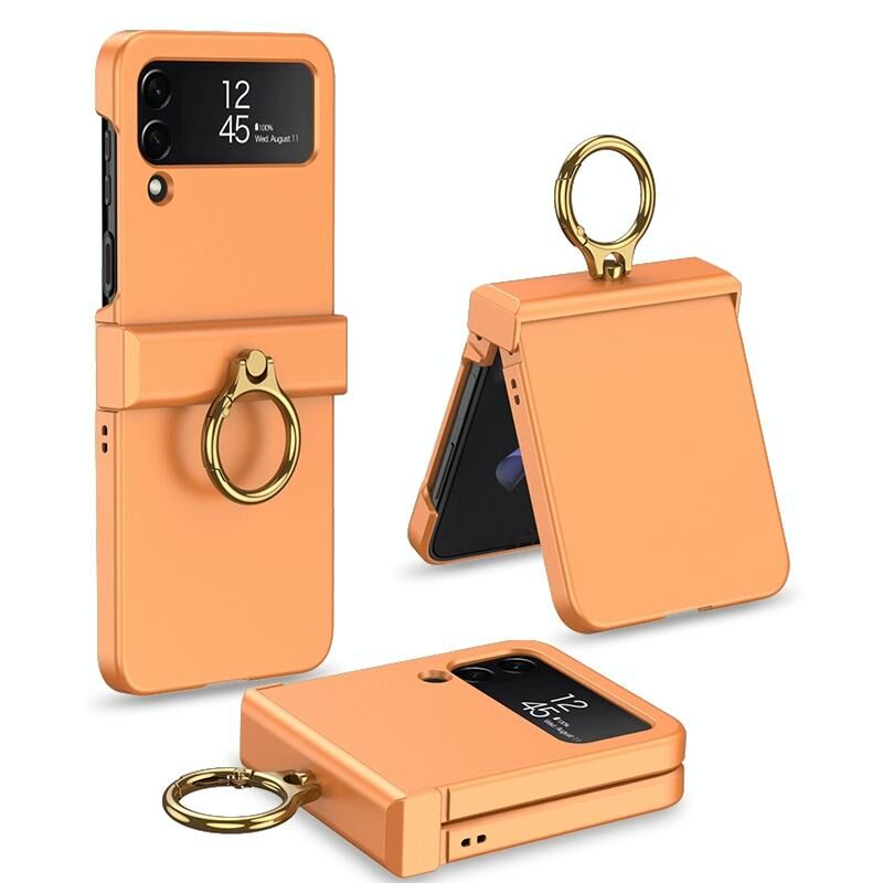 Για Samsung Galaxy Z Flip4 GKK Ultrathin μεντεσέ πλήρους κάλυψης υπόθεση τηλεφώνου με θήκη δαχτυλιδιού (πορτοκαλί) (GKK)