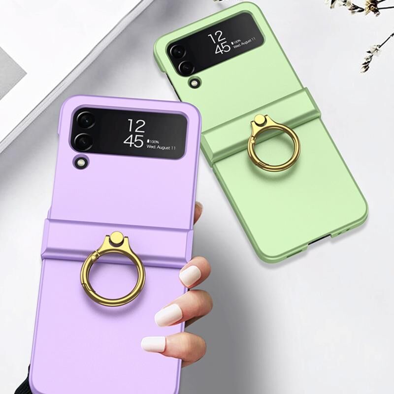 Για Samsung Galaxy Z Flip4 GKK Ultrathin μεντεσέ πλήρους κάλυψης υπόθεση τηλεφώνου με θήκη δαχτυλιδιού (ροζ) (GKK)