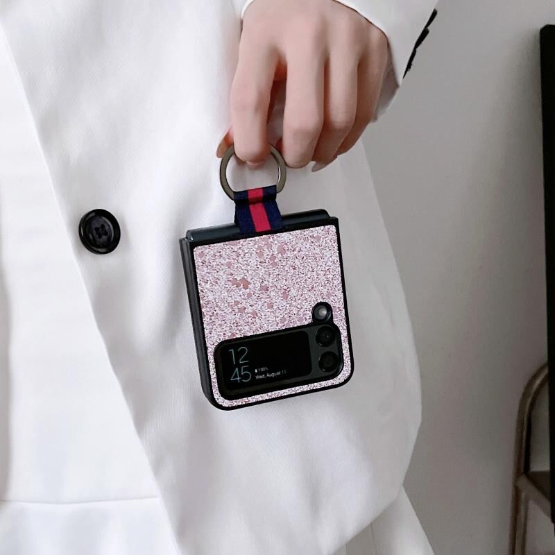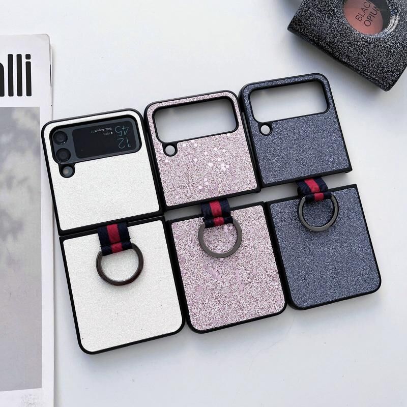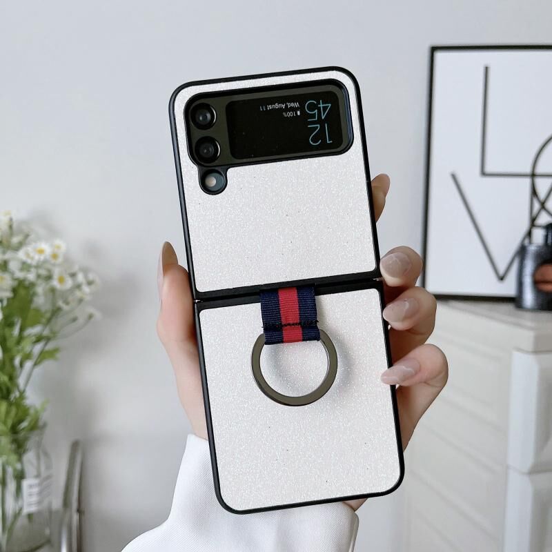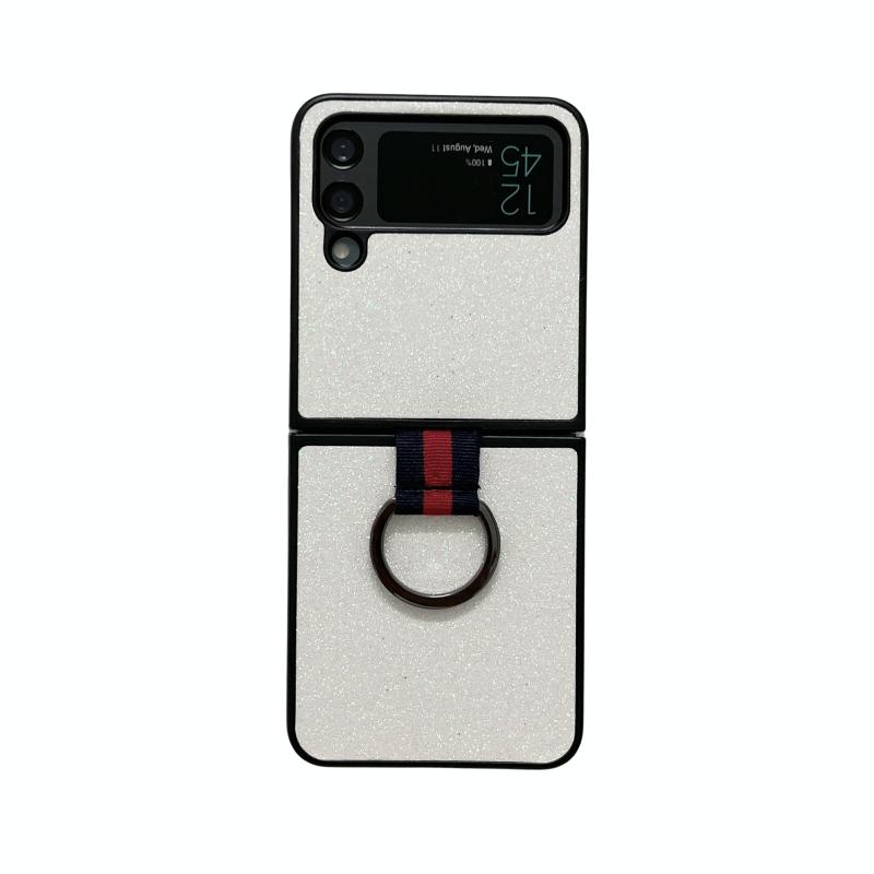 For Samsung Galaxy Z Flip4 Glitter Powder PU Phone Case With Ring(White)