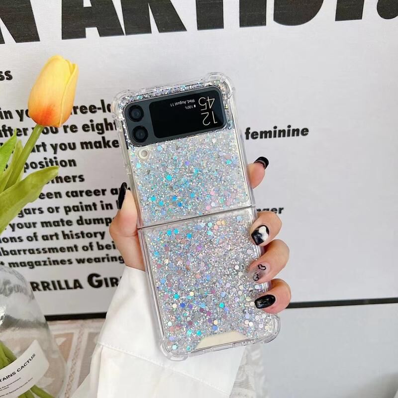Για Samsung Galaxy Z Flip4 Glitter Sequins εποξειδική TPU υπόθεση τηλεφώνου (ασημί)