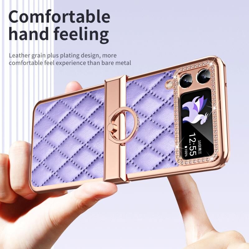 Για Samsung Galaxy Z Flip4 Grid δέρμα μοτίβο ηλεκτρολυτική επιμετάλλωση πλαίσιο πτυσσόμενο τηλέφωνο υπόθεση (μωβ)