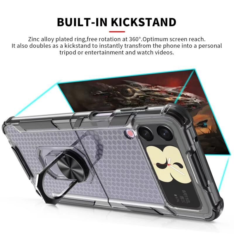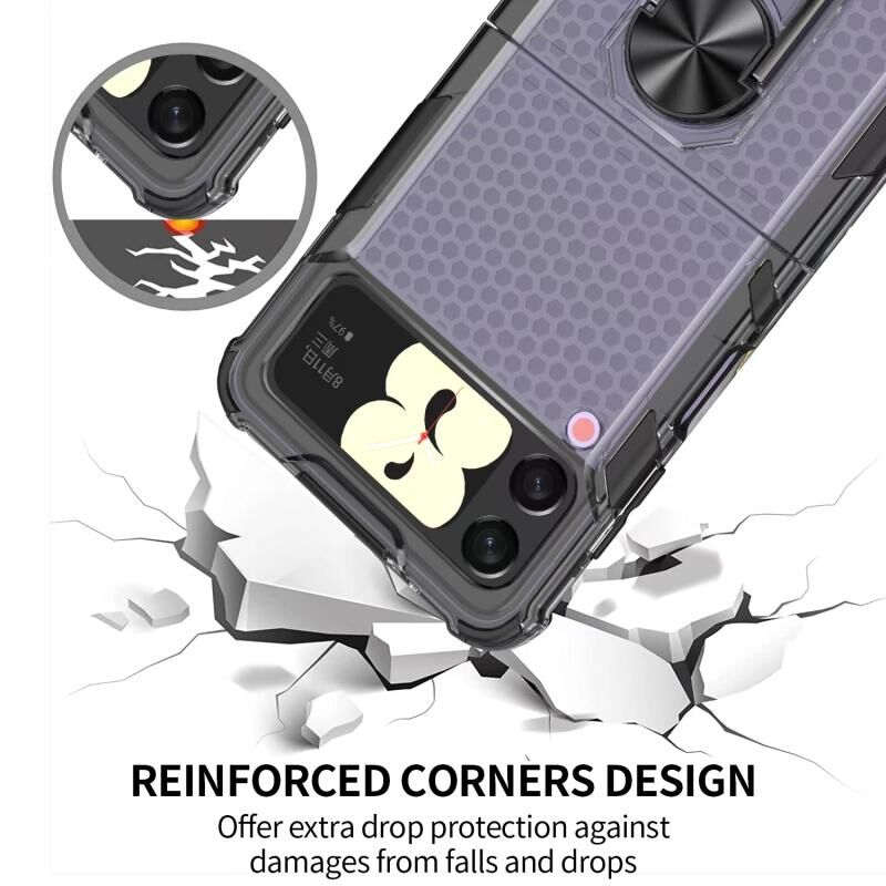 Για Samsung Galaxy Z Flip4 Honeycomb PC + TPU Αδιάβροχη θήκη τηλεφώνου με θήκη δαχτυλιδιού (μαύρο)