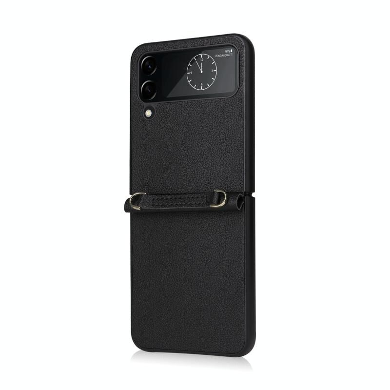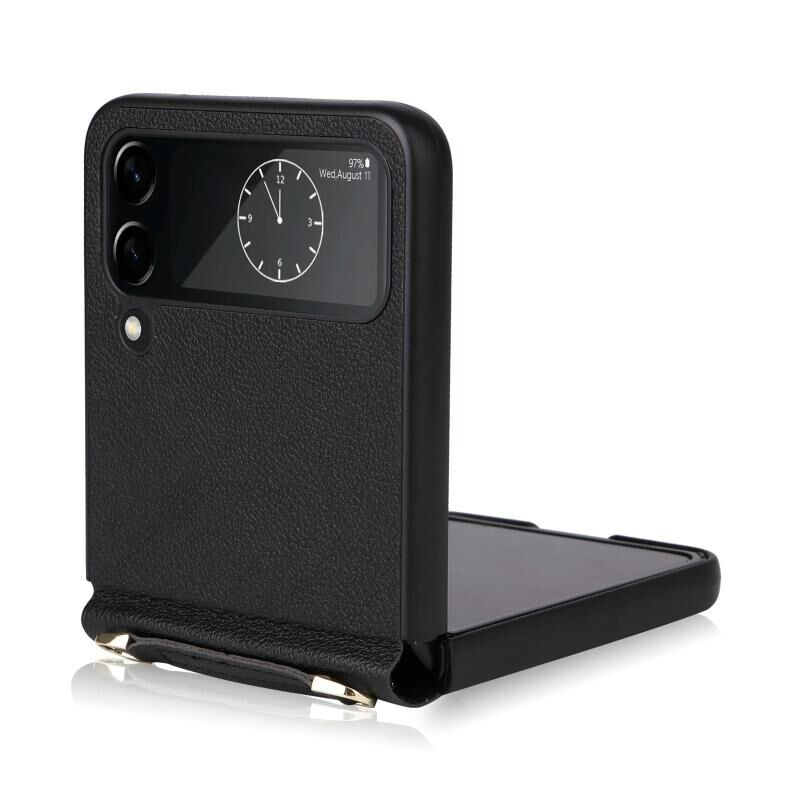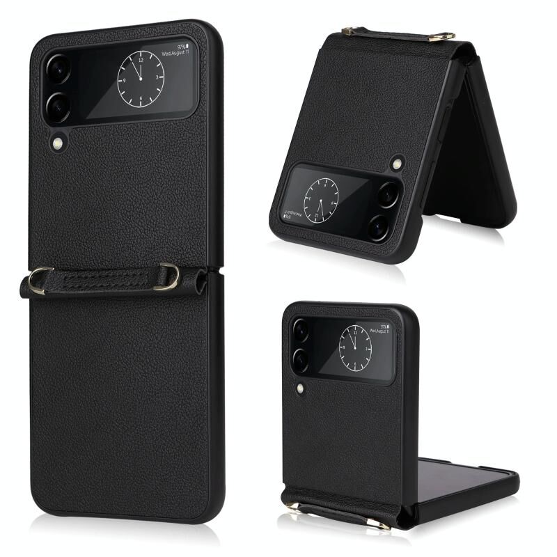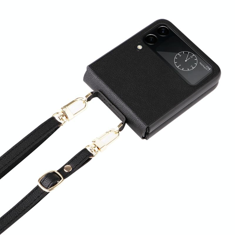 For Samsung Galaxy Z Flip4 Lambskin Texture Leather Phone Case with Lanyard(Black)