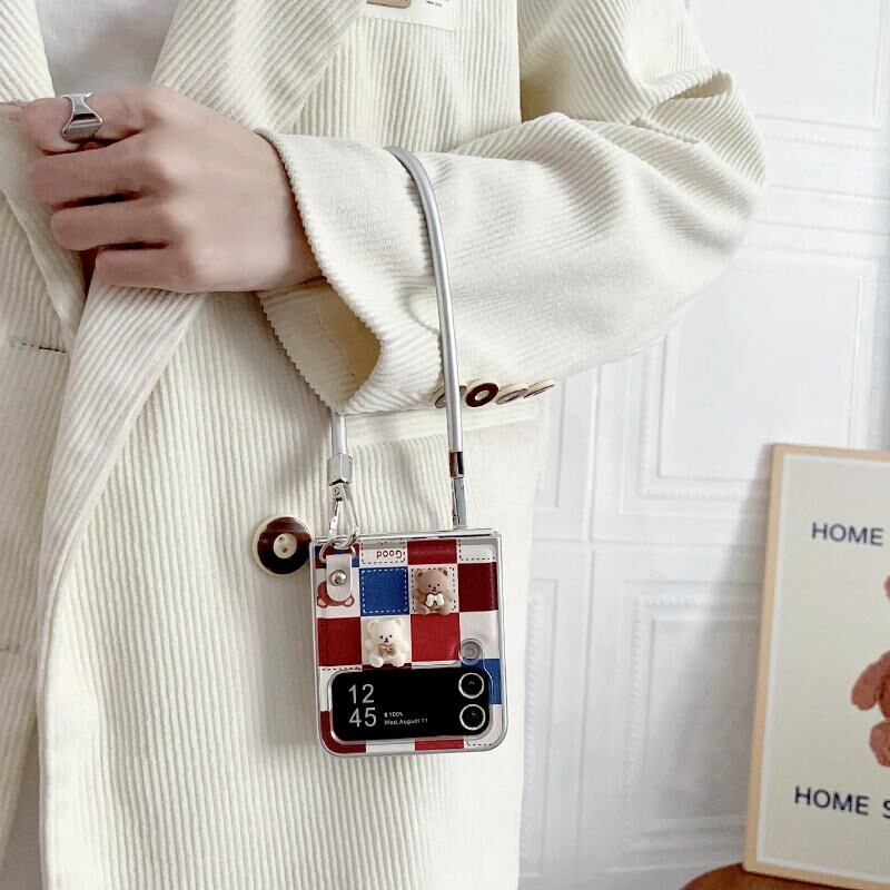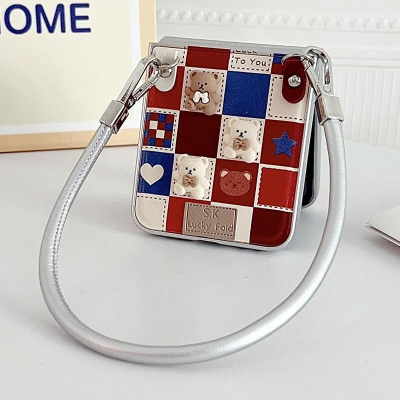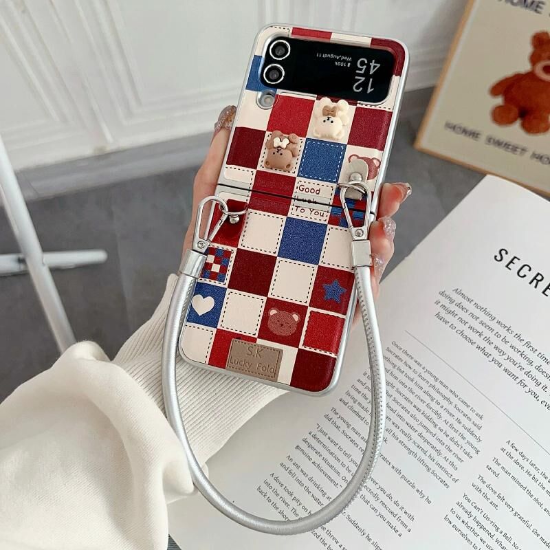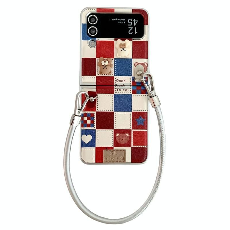 Θήκη κινητού Samsung Galaxy Z Flip4 με σχέδιο Λαττικού Μικρού Αρκούδου, πλήρης κάλυψη, με λουρί καρπού (Κόκκινο)