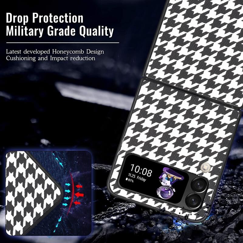 Θήκη Προστασίας για Samsung Galaxy Z Flip4 από Δέρμα, Αντικραδασμική (Μαύρο, Λευκό, Μοτίβο Λεοπάρδαλης)