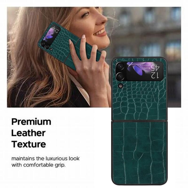 Για Samsung Galaxy Z Flip4 δέρμα Shockproof προστατευτική θήκη τηλεφώνου (πράσινο κροκόδειλο υφή)
