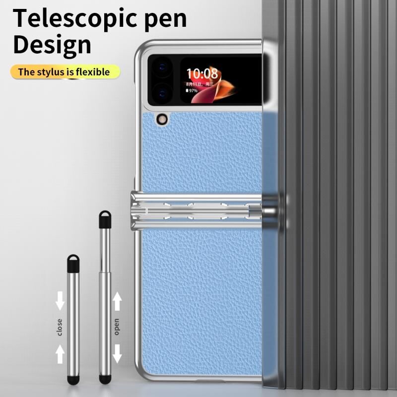 Για το Samsung Galaxy Z Flip4 Litchi Υφή δέρμα αρθρωτό Electroplated υπόθεση τηλεφώνου με στυλό (ασημί μπλε)