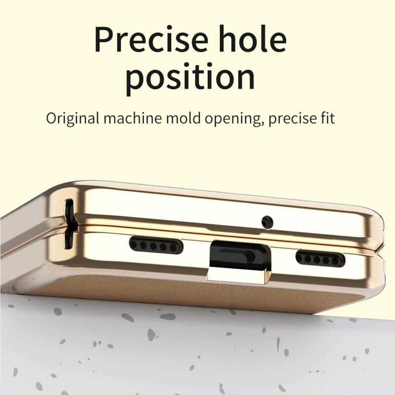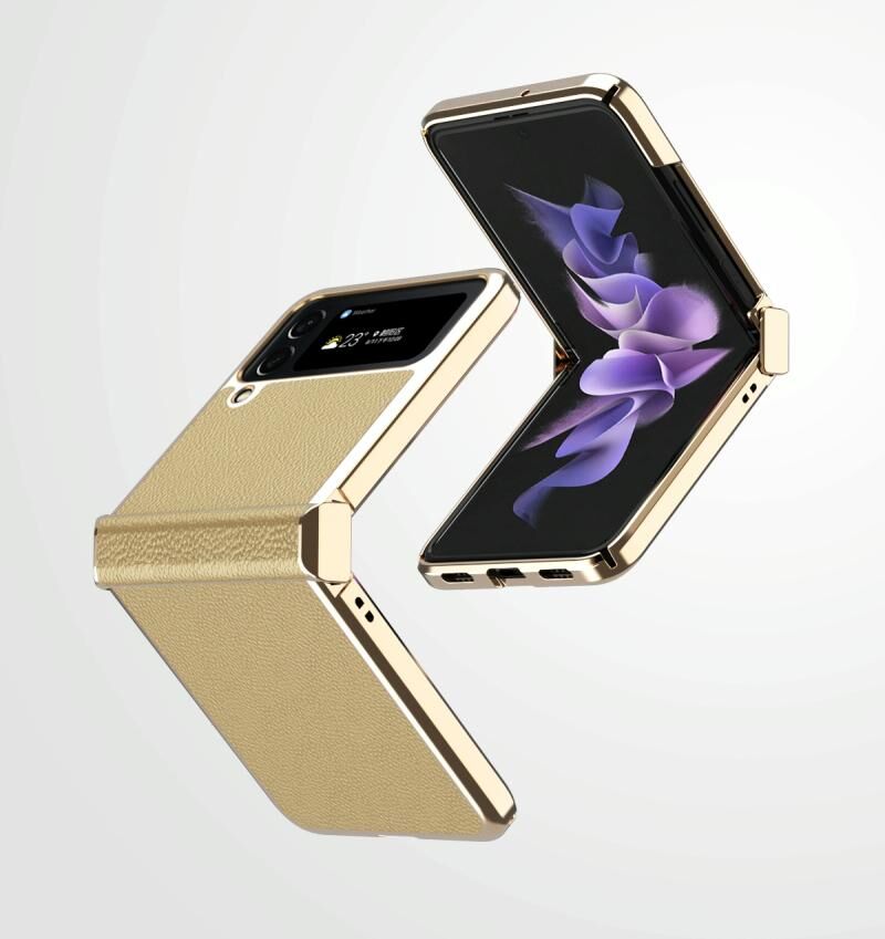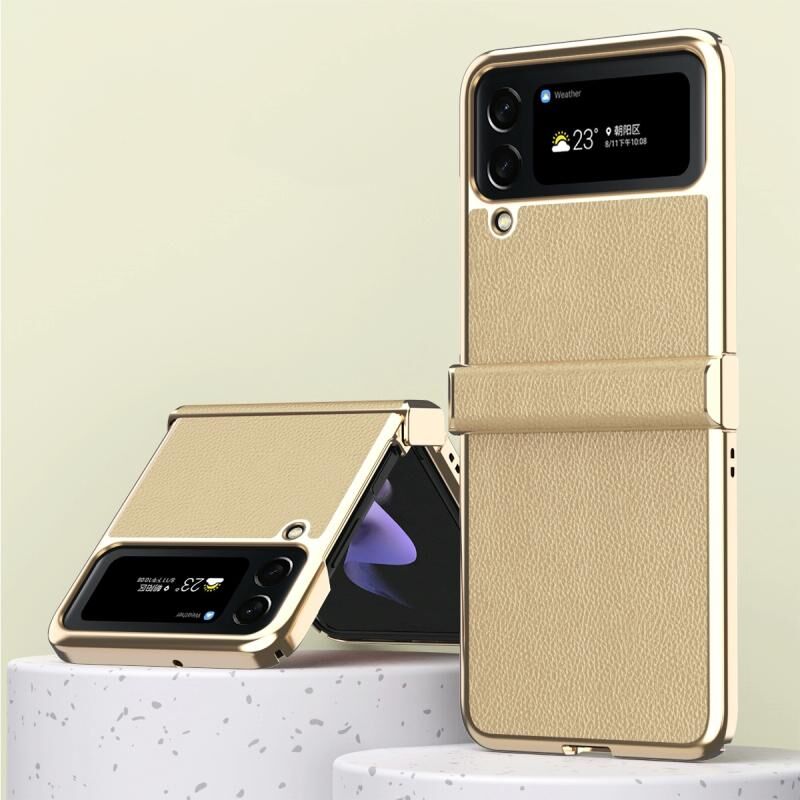 Για Samsung Galaxy Z Flip4 Litchi Υφή δέρμα μεταλλικό πλαίσιο μεντεσέ τηλέφωνο υπόθεση (χρυσό)