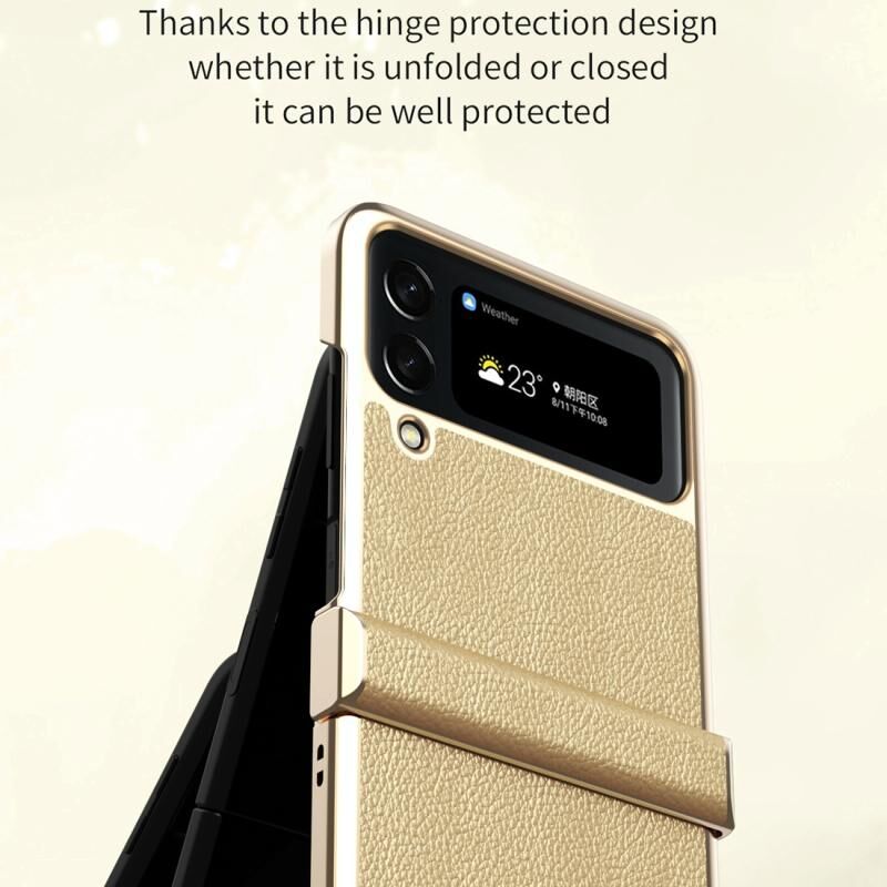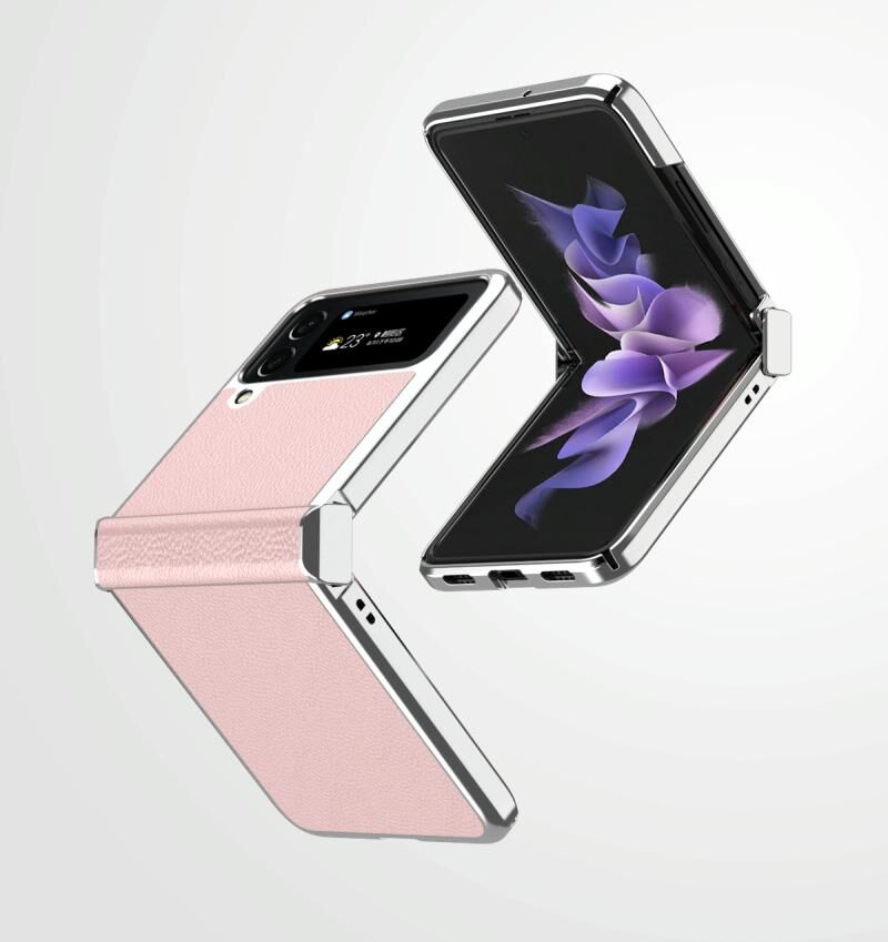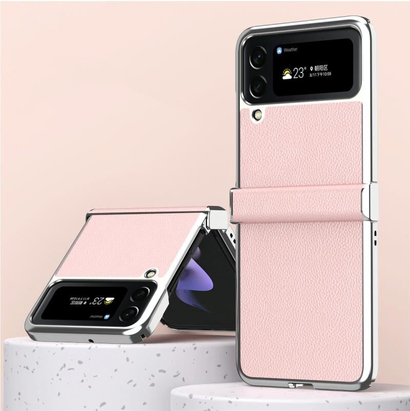 Για Samsung Galaxy Z Flip4 Litchi Υφή δέρμα μεταλλικό πλαίσιο μεντεσέ τηλέφωνο υπόθεση (ροζ)
