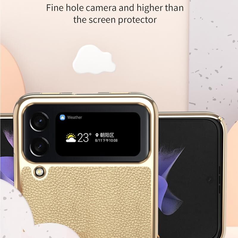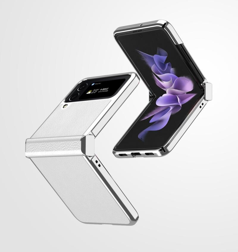 Για Samsung Galaxy Z Flip4 Litchi Υφή δέρμα μεταλλικό πλαίσιο μεντεσέ τηλέφωνο υπόθεση (λευκό)
