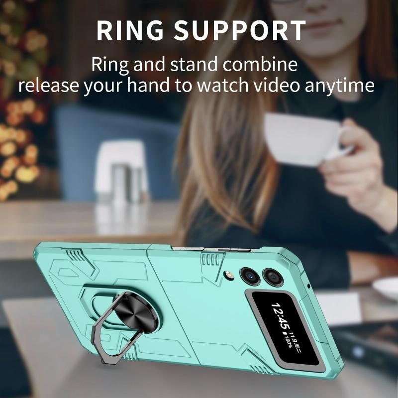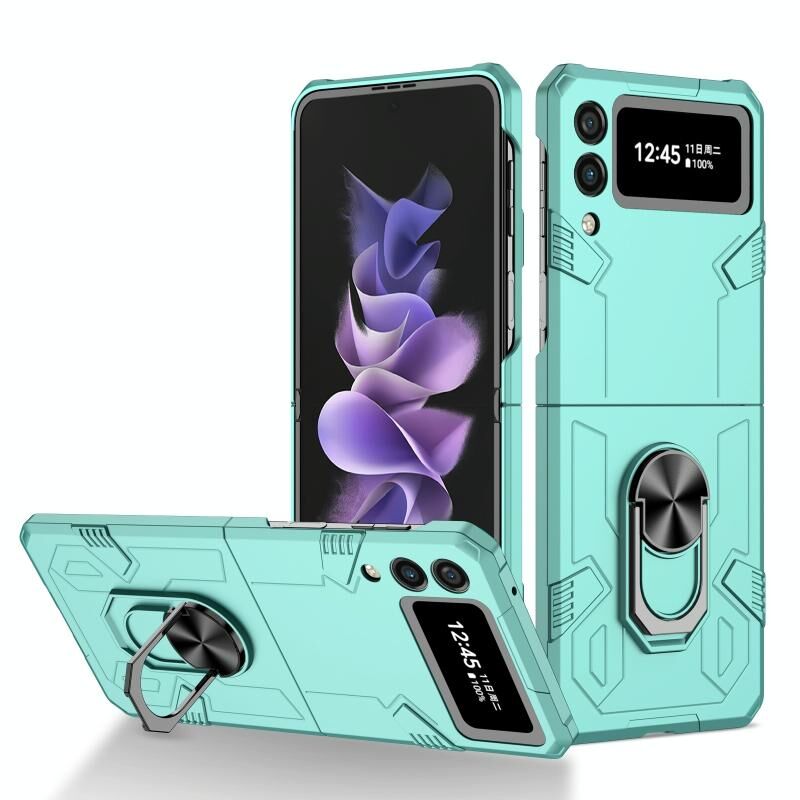 For Samsung Galaxy Z Flip4 Matte UV Armor Ring Shockproof Phone Case(Sky Blue)
