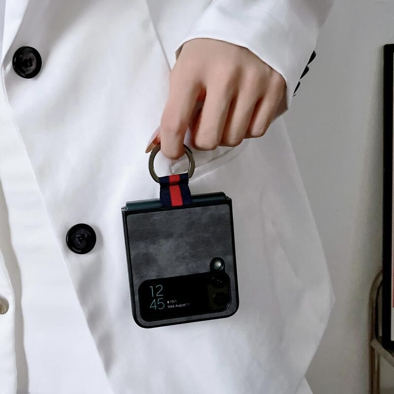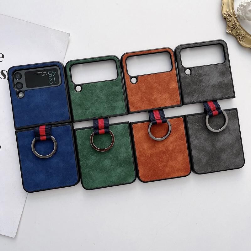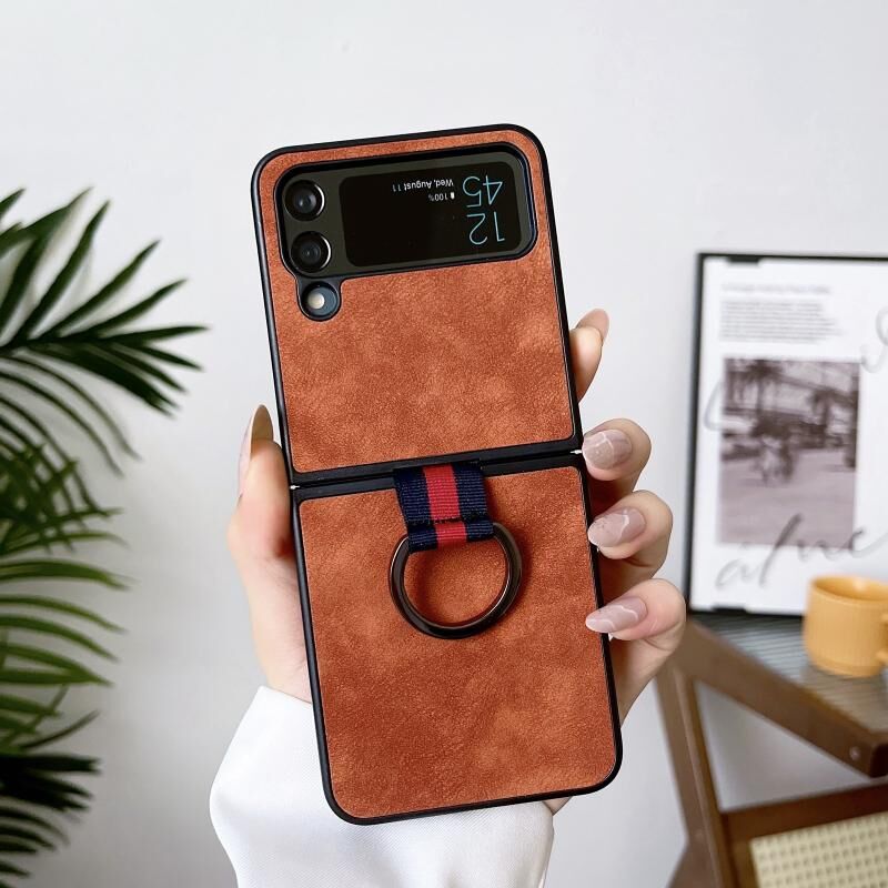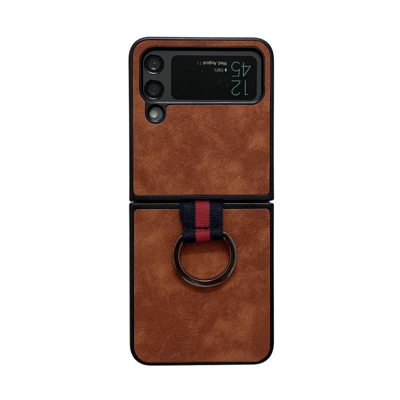 For Samsung Galaxy Z Flip4 Morocco Texture PU+TPU+PC Shockproof Phone Case With Ring(Brown)