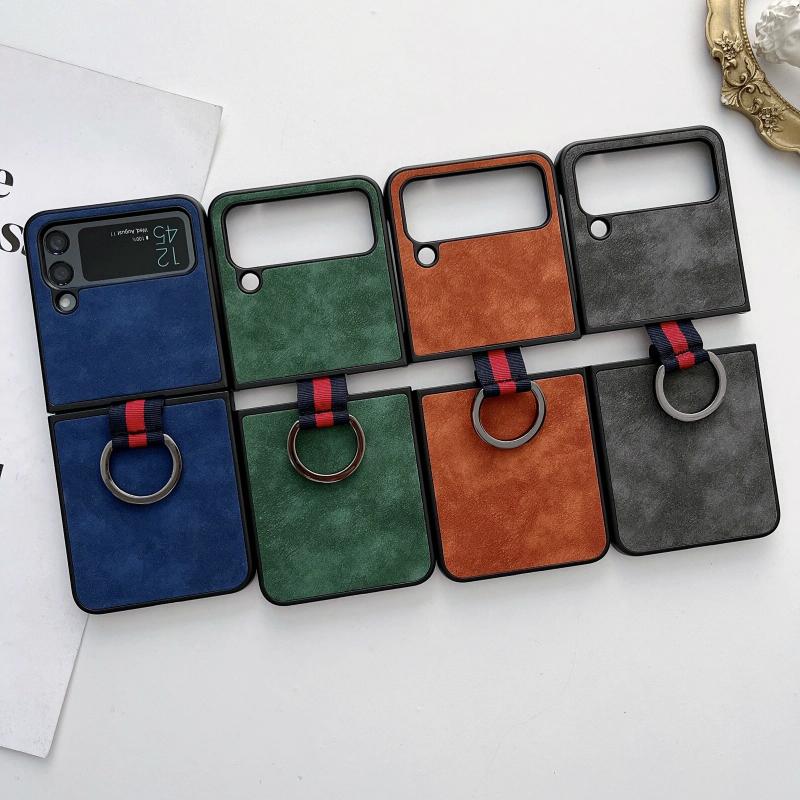 For Samsung Galaxy Z Flip4 Morocco Texture PU+TPU+PC Shockproof Phone Case With Ring(Green)