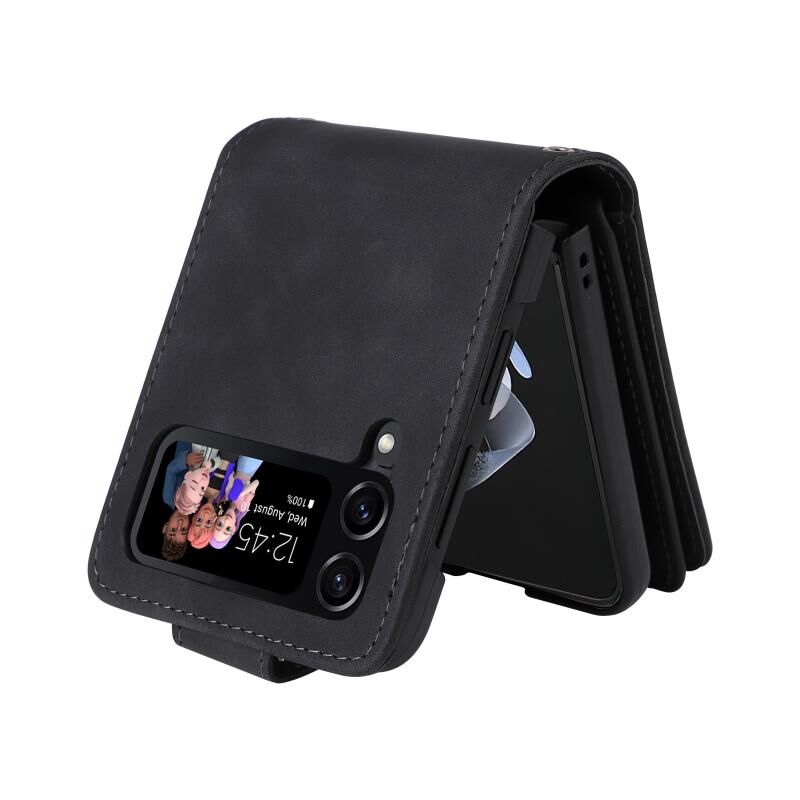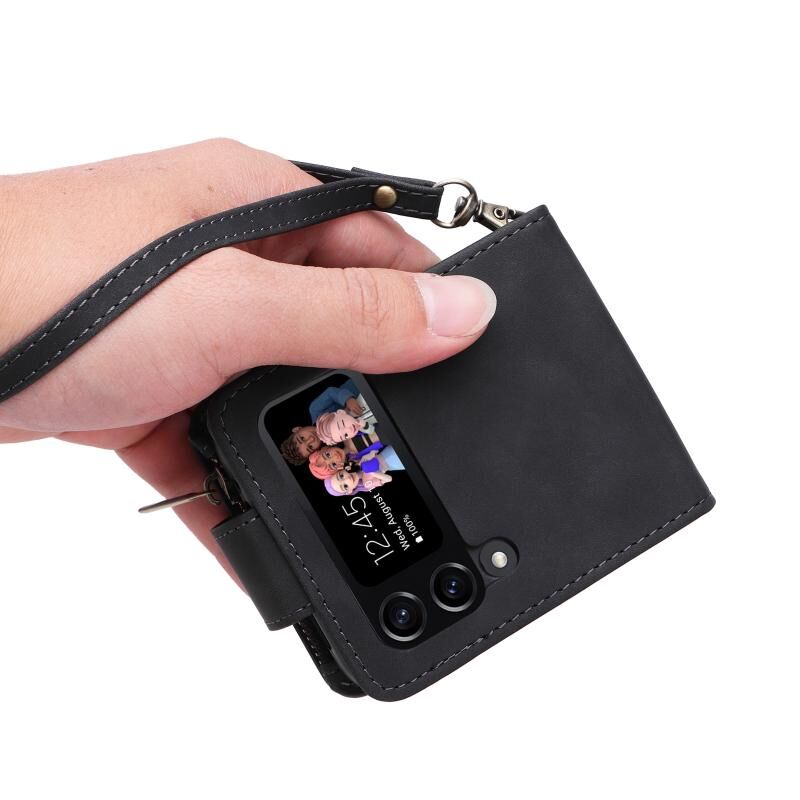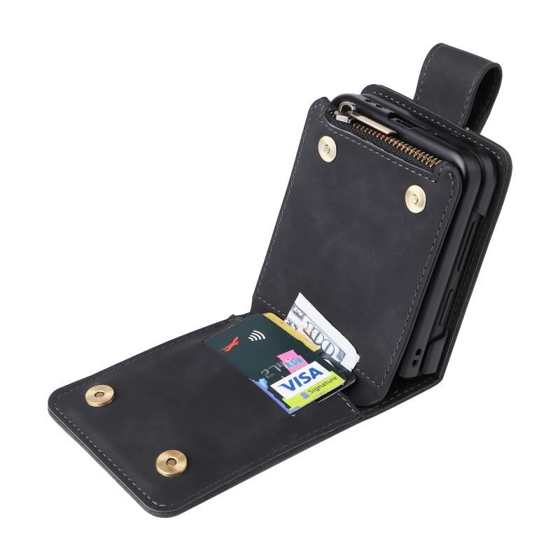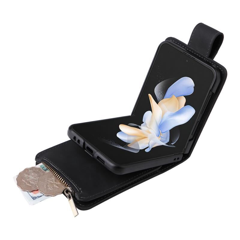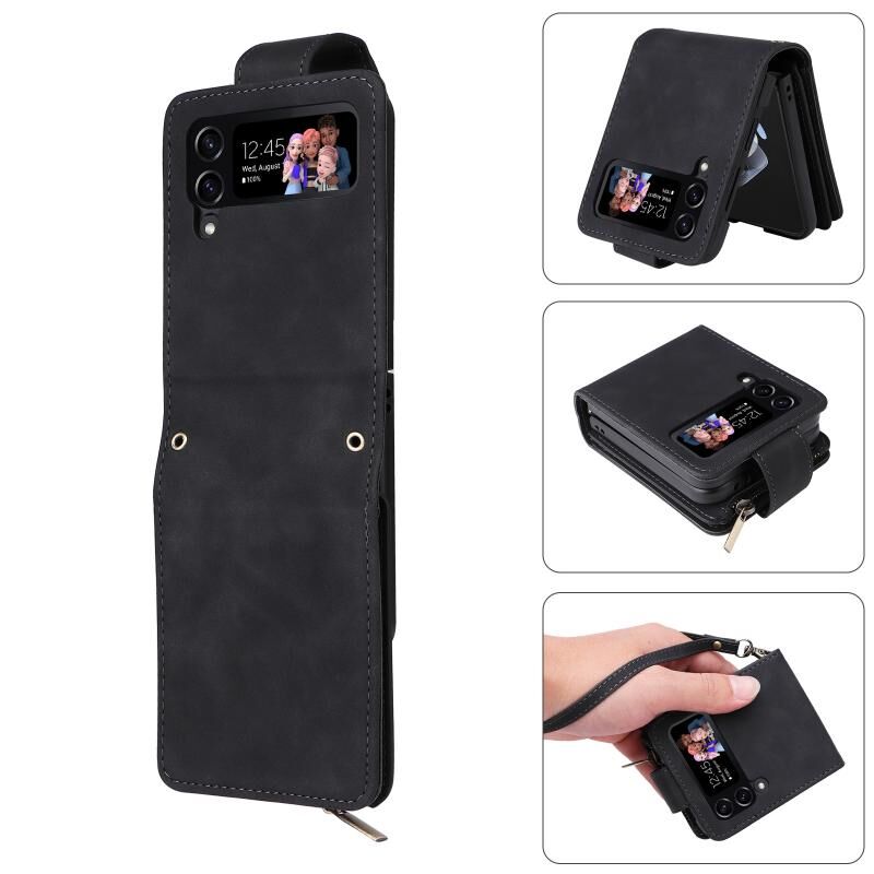 Για Samsung Galaxy Z Flip4 πολυλειτουργικό παγωμένο φερμουάρ πορτοφόλι δερμάτινη θήκη τηλεφώνου (μαύρο)