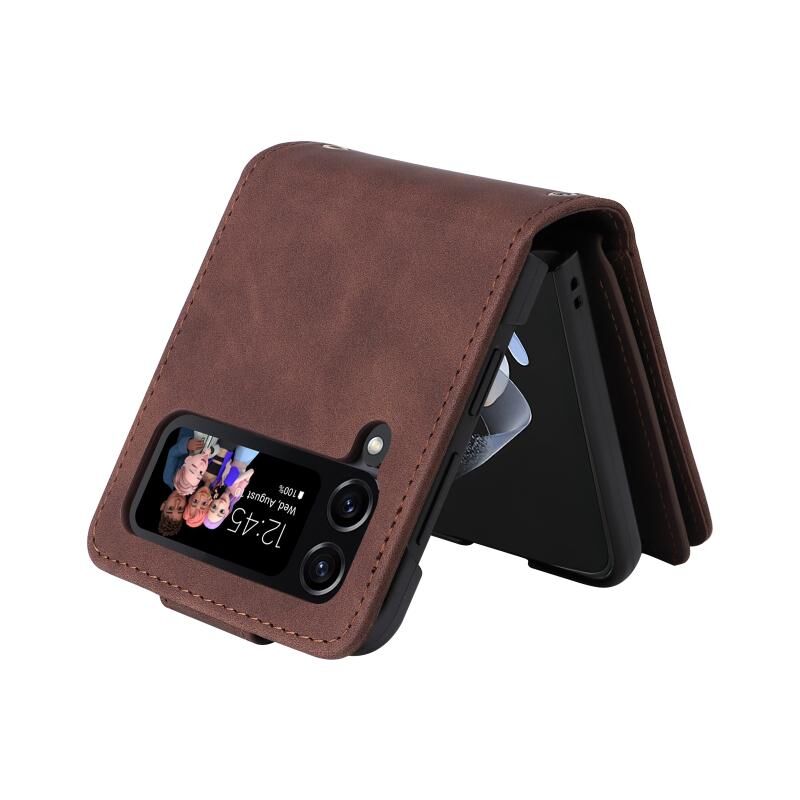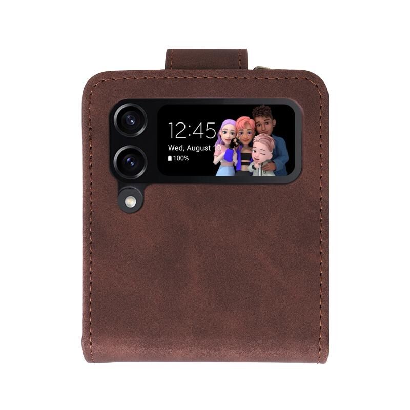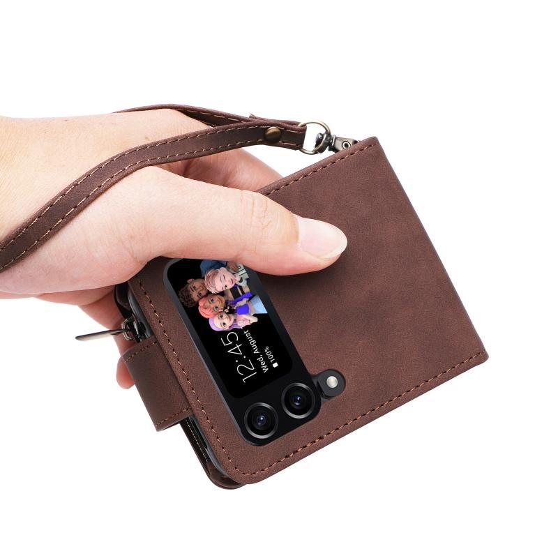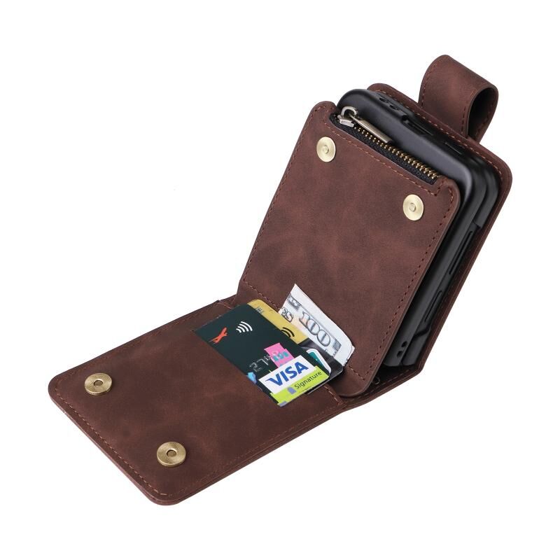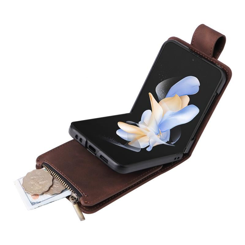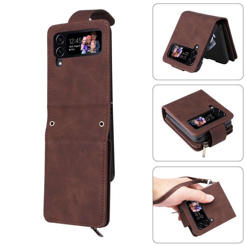 Για Samsung Galaxy Z Flip4 πολυλειτουργικό παγωμένο φερμουάρ πορτοφόλι δερμάτινη θήκη τηλεφώνου (καφέ)