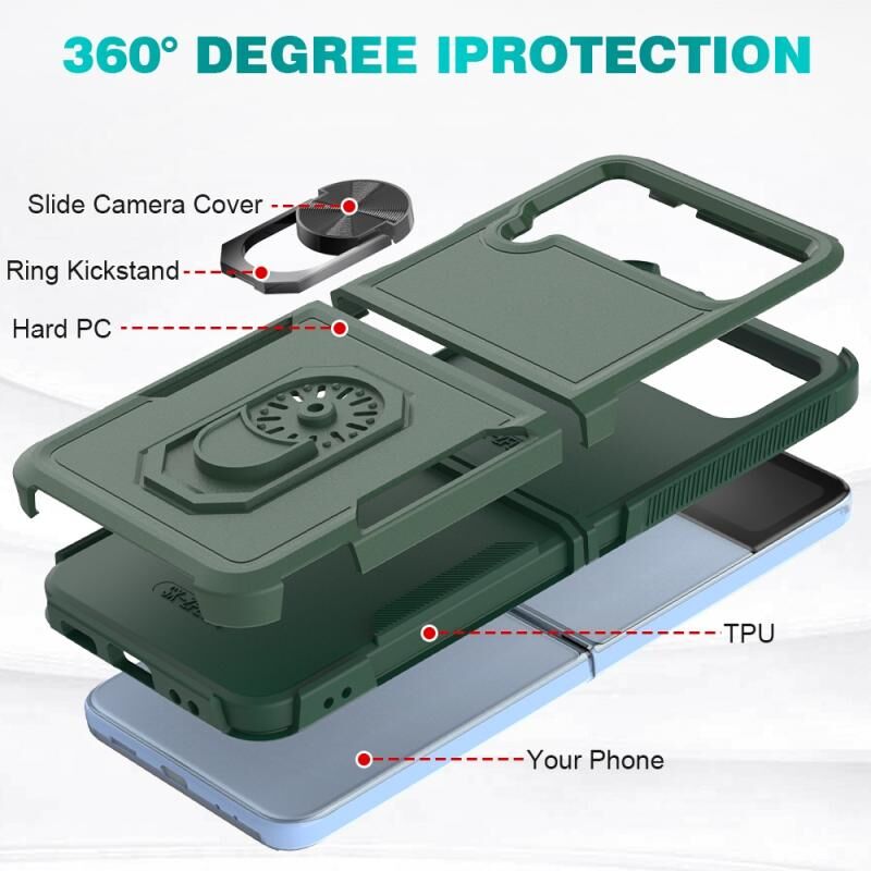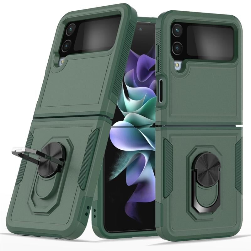 Θήκη κινητού τηλεφώνου Samsung Galaxy Z Flip4 PC + TPU με δακτύλιο στήριξης (Ανοιχτό Πράσινο)