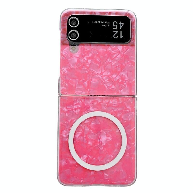 For Samsung Galaxy Z Flip4 Pearlescent Shell Texture MagSafe Phone Case(Red)