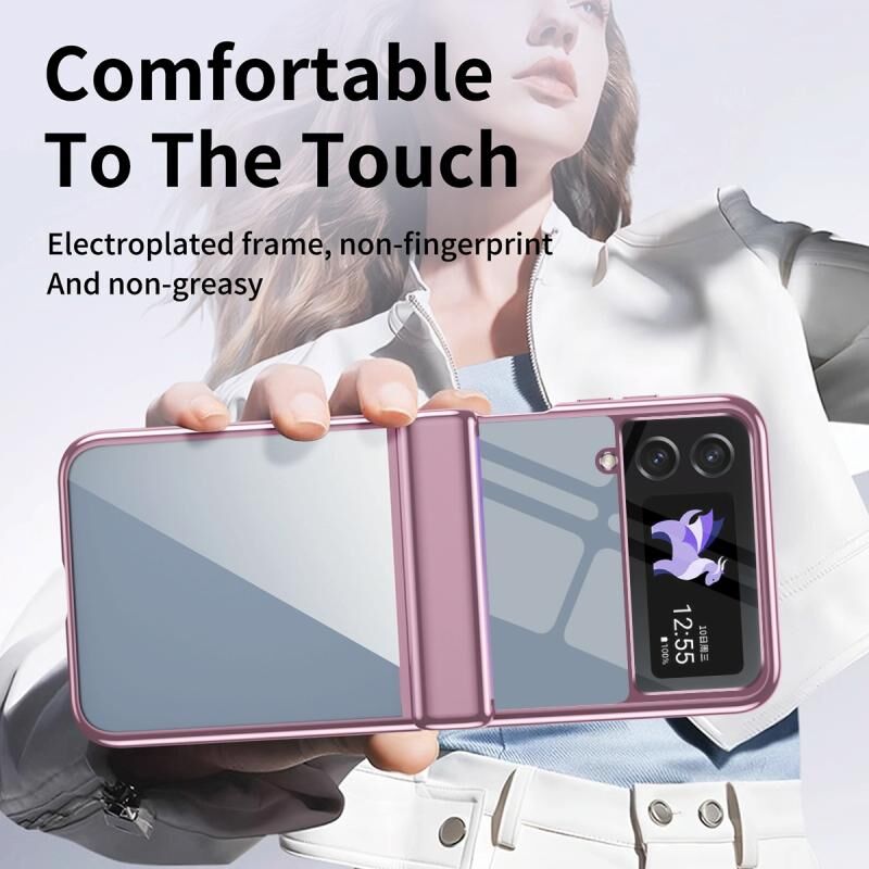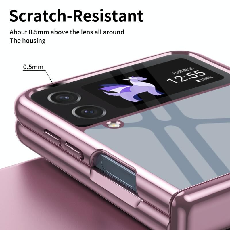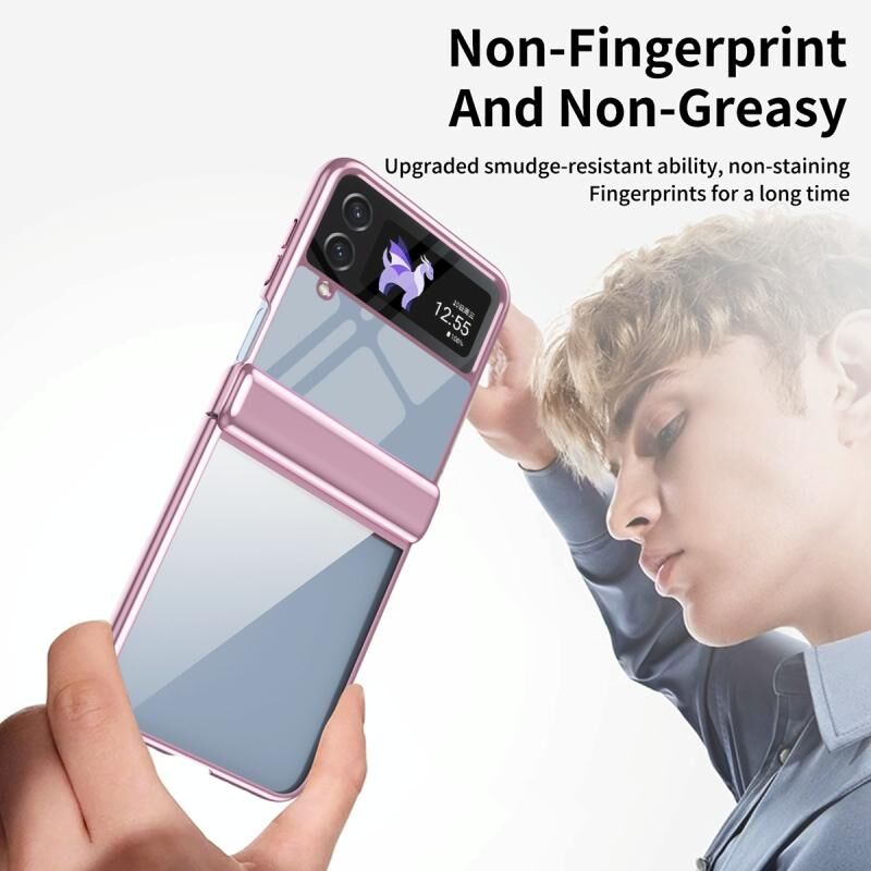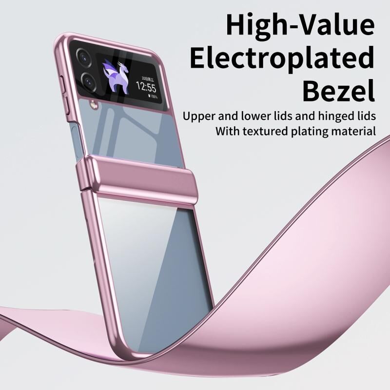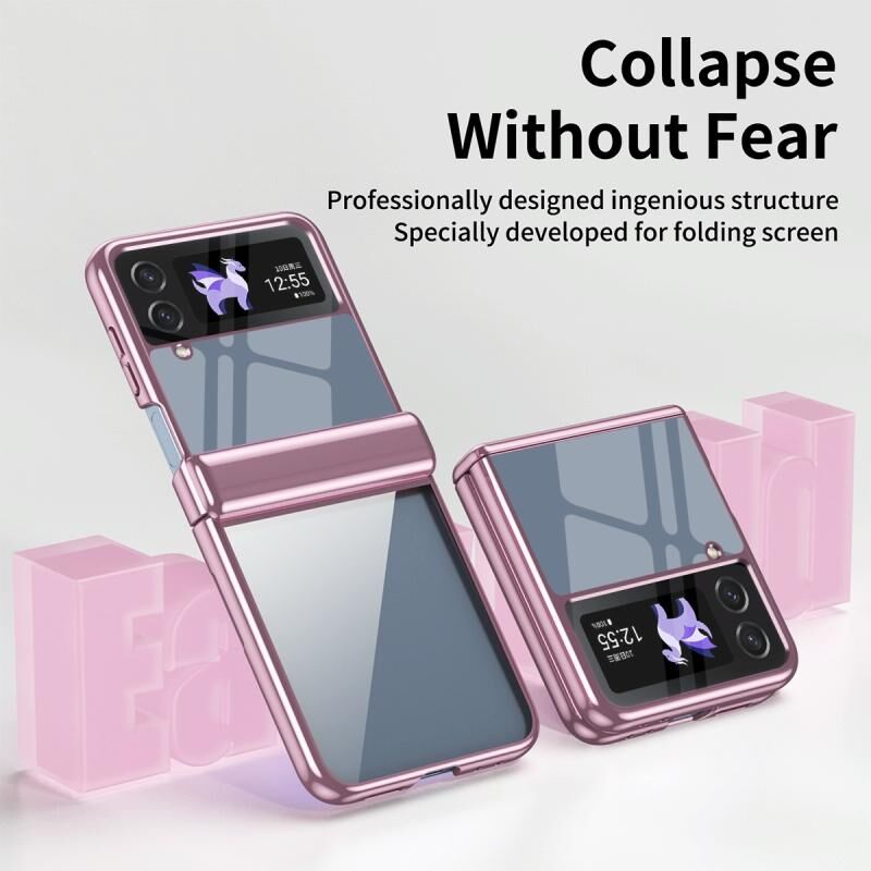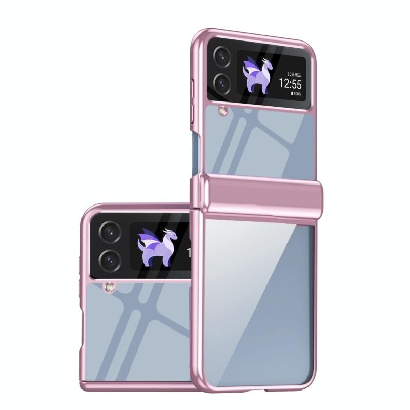 Για Samsung Galaxy Z Flip4 Επιμετάλλωση Διαφανής πτυσσόμενο αρθρωτό τηλέφωνο υπόθεση (ροζ)