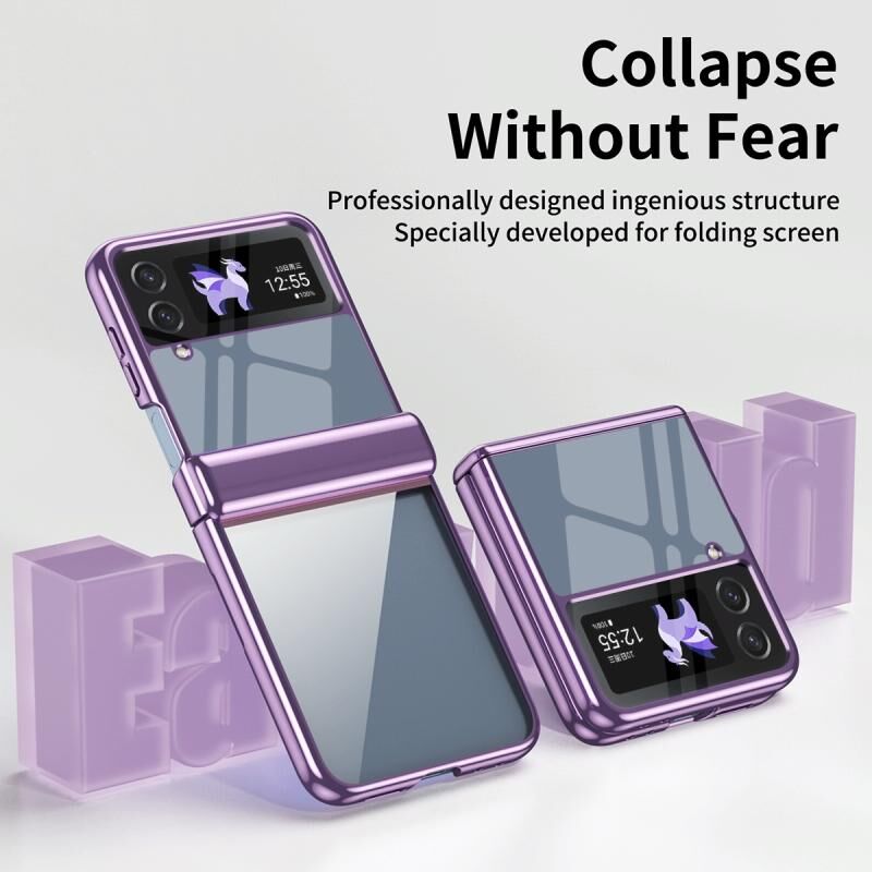 Για το Samsung Galaxy Z Flip4 Επιμετάλλωση Διαφανής πτυσσόμενο αρθρωτό τηλέφωνο υπόθεση (μωβ)