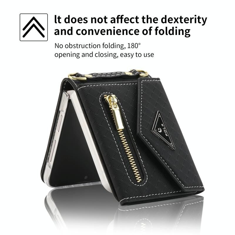 Για Samsung Galaxy Z Flip4 POLA Grid υφή πολλαπλών καρτών υποδοχές φερμουάρ πορτοφόλι υπόθεση τηλεφώνου (μαύρο) (POLA)