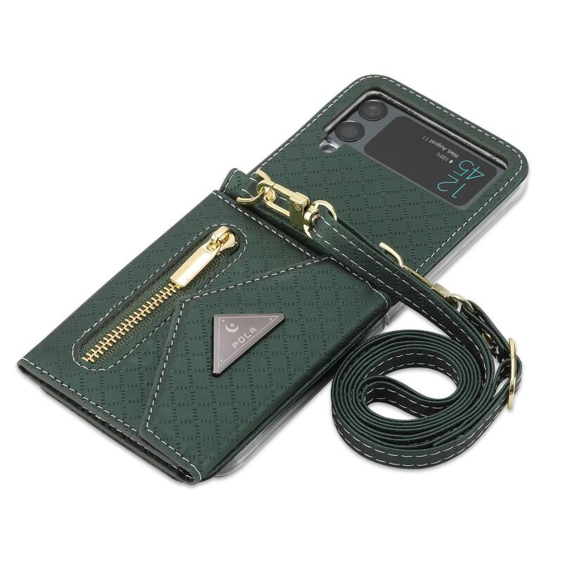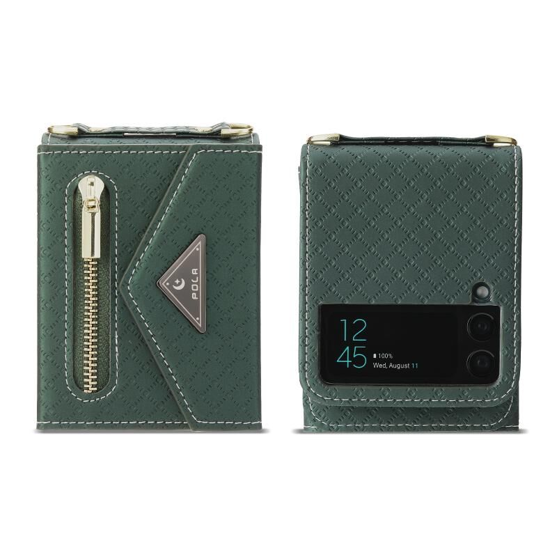 Για Samsung Galaxy Z Flip4 POLA Grid υφή πολλαπλών καρτών υποδοχές φερμουάρ πορτοφόλι υπόθεση τηλεφώνου (πράσινο) (POLA)