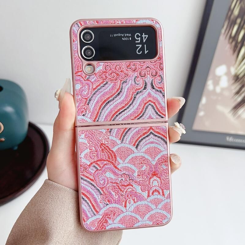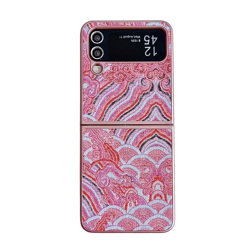 Θήκη κινητού τηλεφώνου πλήρους κάλυψης με κέντημα επίκαιρων σύννεφων για Samsung Galaxy Z Flip4 (Πράσινο)