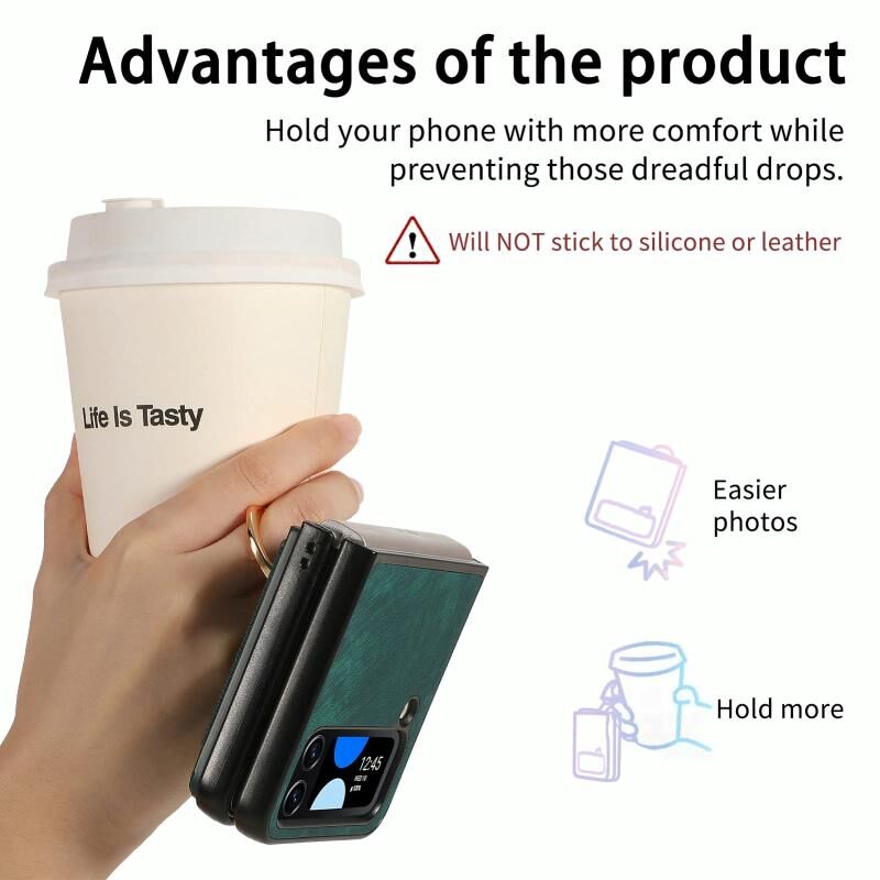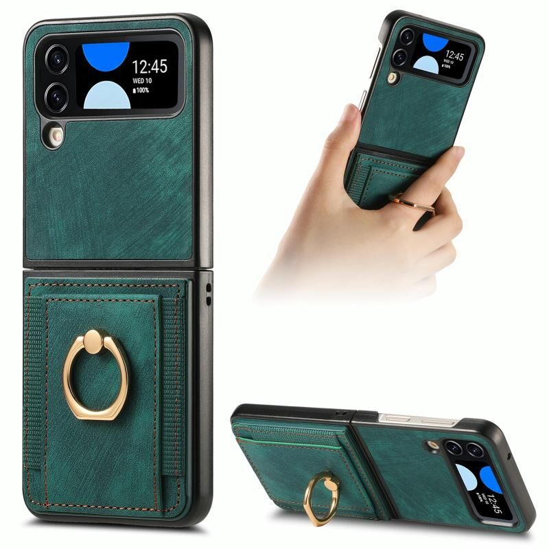 Για Samsung Galaxy Z Flip4 Retro δέρμα-άισθησης δαχτυλίδι πολυ-κάρτα πορτοφόλι υπόθεση τηλεφώνου (πράσινο)
