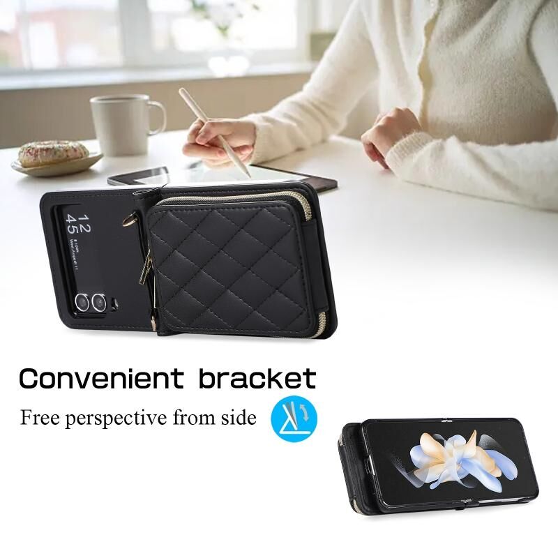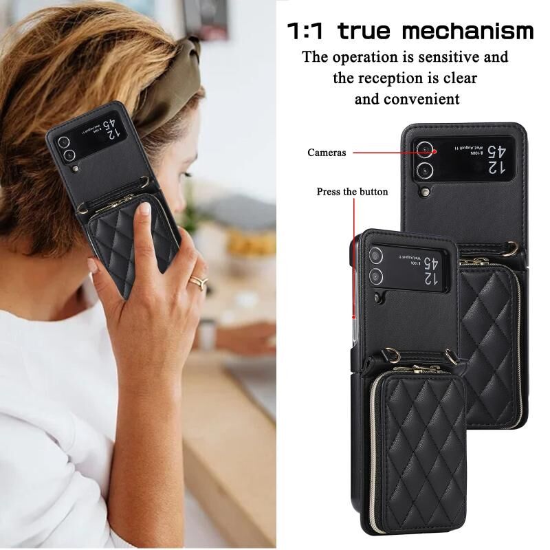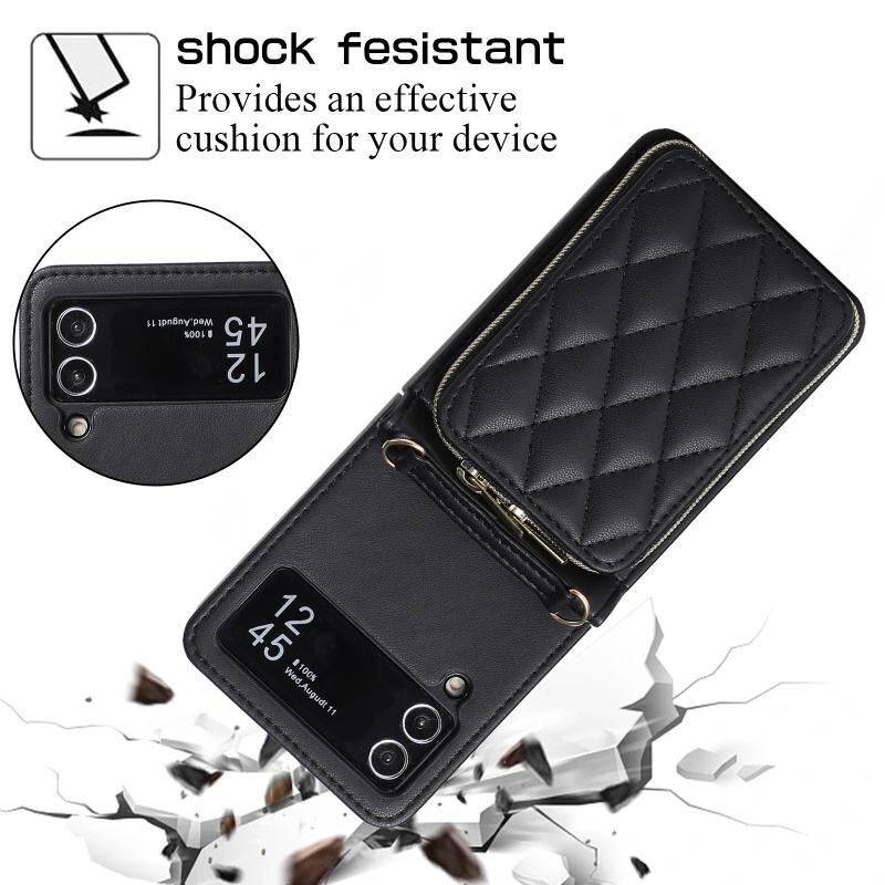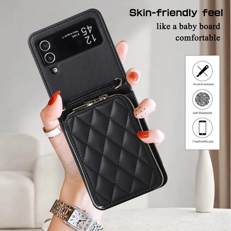 Για Samsung Galaxy Z Flip4 Rhombic πλήρη φερμουάρ πορτοφόλι δερμάτινη θήκη τηλεφώνου (μαύρο)