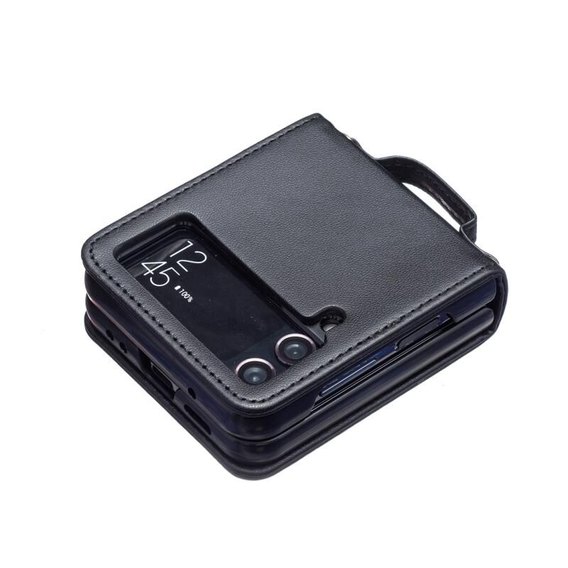 Για το Samsung Galaxy Z Flip4 Rhombus σχήμα σταυρό κορδόνι δερμάτινη θήκη τηλεφώνου Lanyard (Μαύρο)