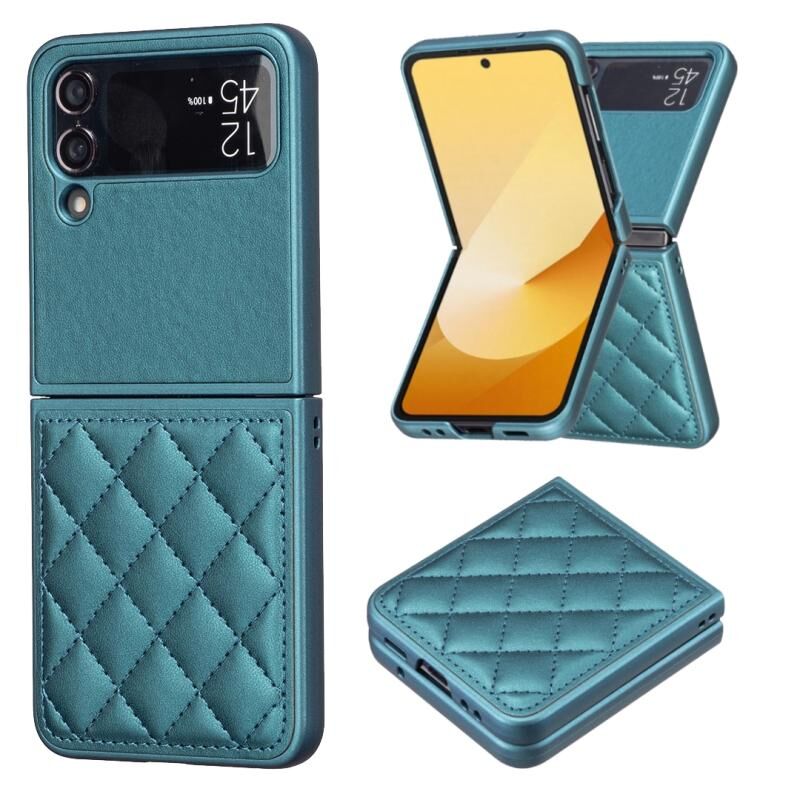Για Samsung Galaxy Z Flip4 Rhombus-shaped Leather Back Cover Phone Case(Green)