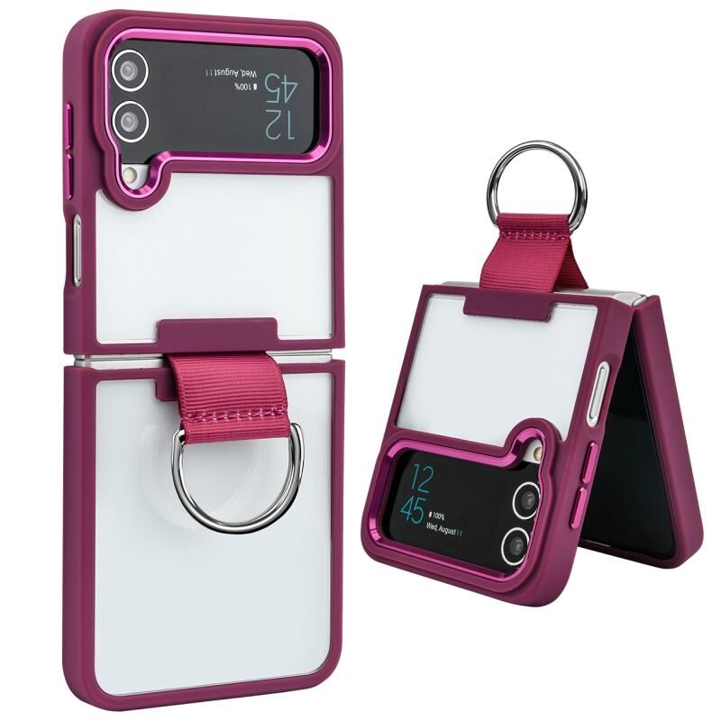 For Samsung Galaxy Z Flip4 Shield Transparent TPU + PC Phone Case with Ring(Red)