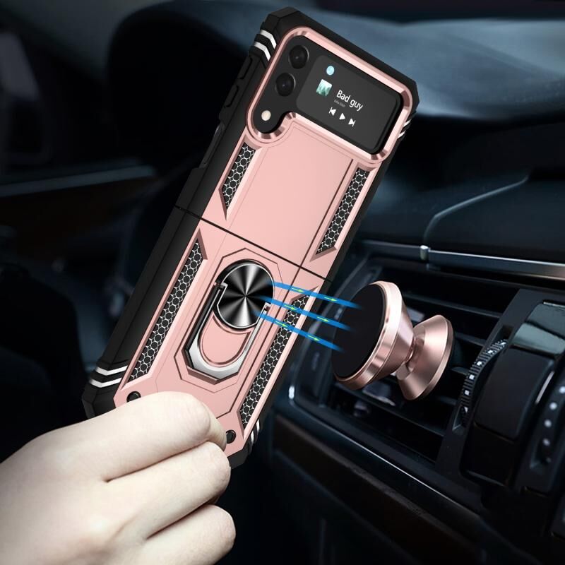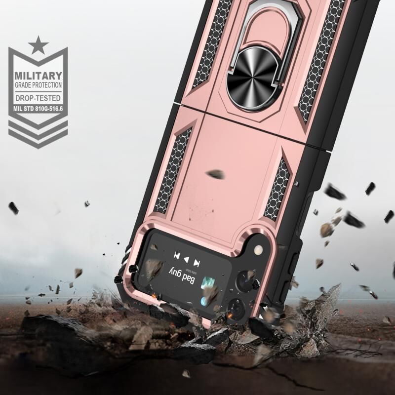Για Samsung Galaxy Z Flip4 Shockproof TPU + PC Προστατευτική θήκη με 360 μοίρες περιστρεφόμενη θήκη (ροζ χρυσό)