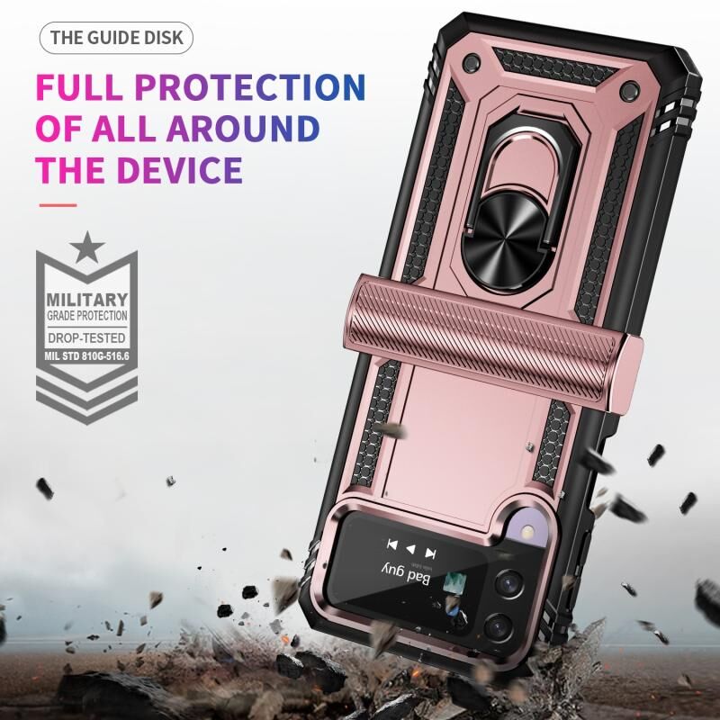 Για Samsung Galaxy Z Flip4 Shockproof TPU + PC Προστατευτική θήκη τηλεφώνου με 360 μοίρες περιστρεφόμενη θήκη (Rose Gold)